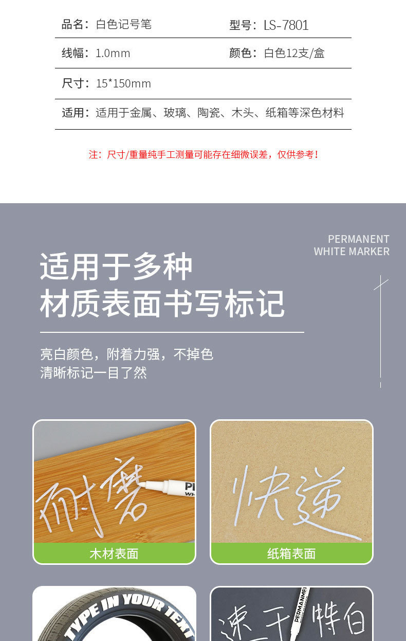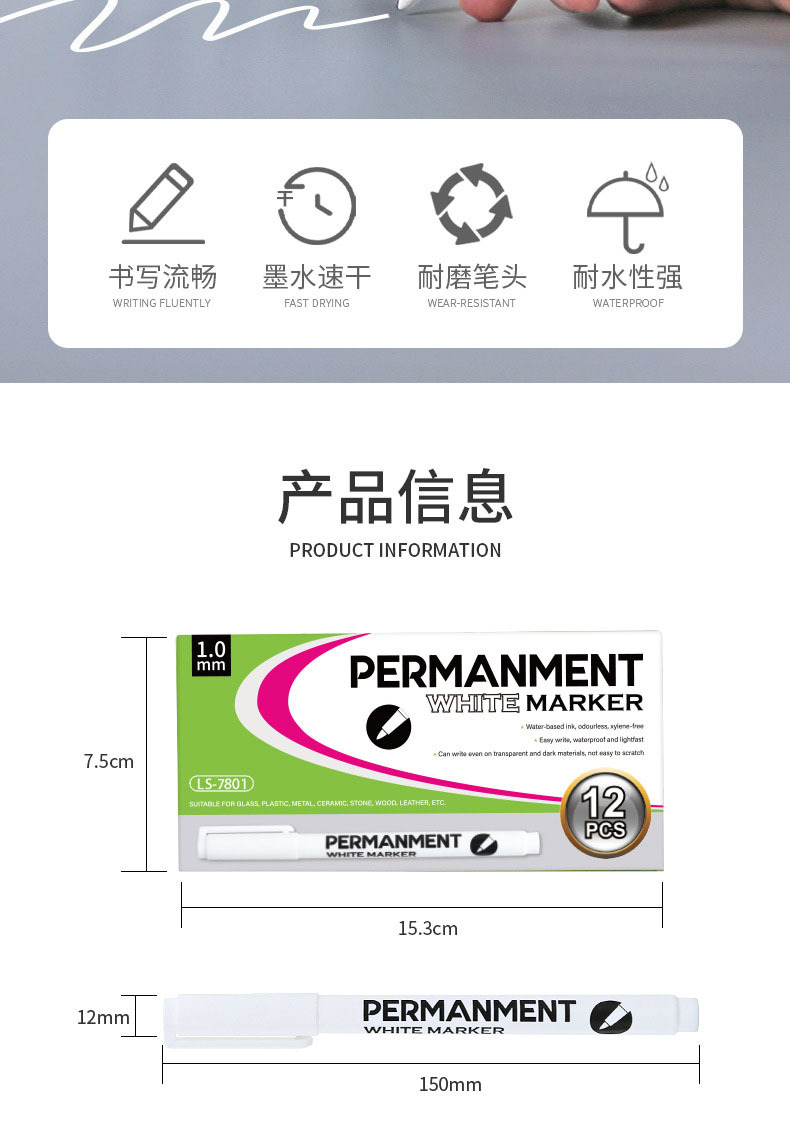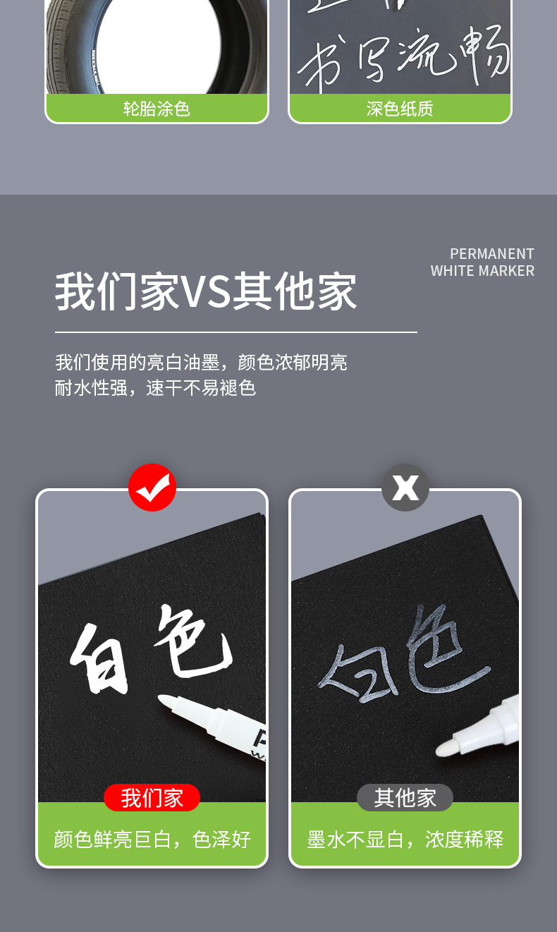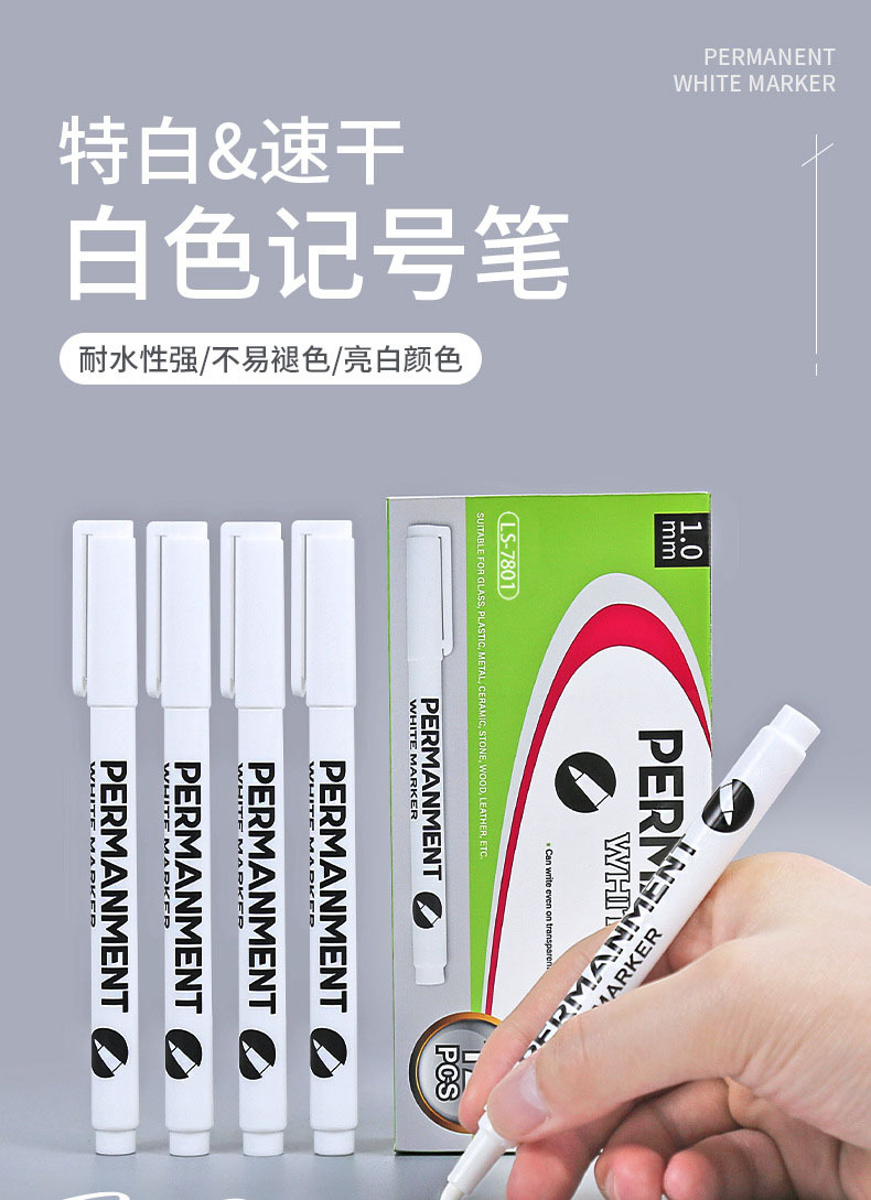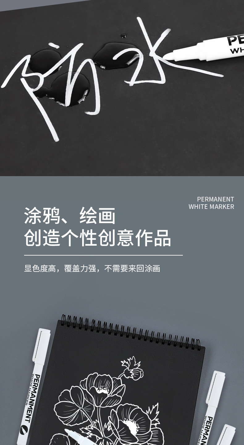 白いマークペン水性防水色落ちしないグッカードペン金属ハイライト落書きマーク速乾性アクリルマーカー