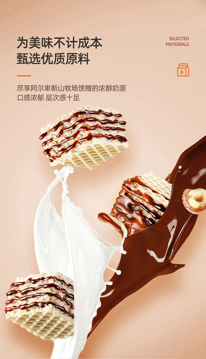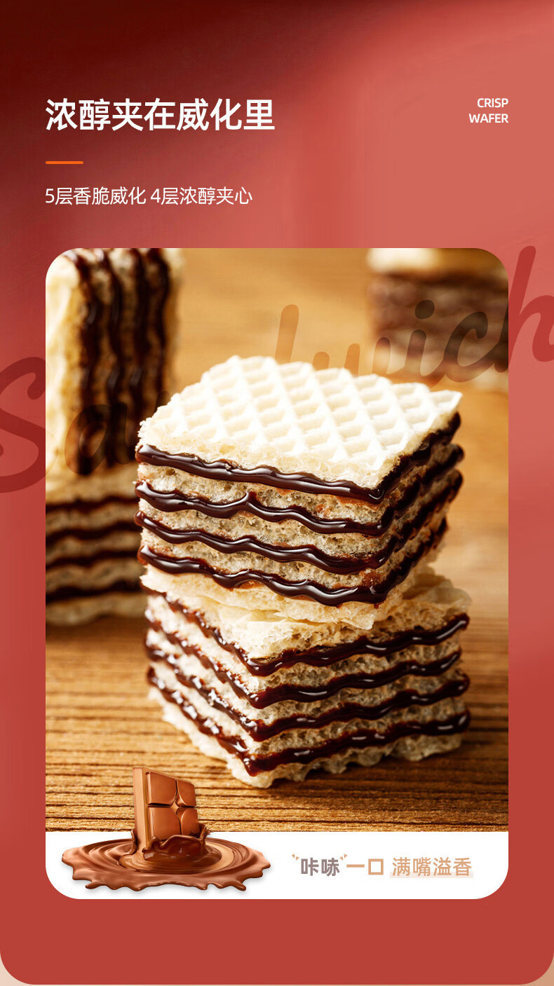 莱家チョコレート榛子サンドイッチ威化餅乾網紅間食午後茶ビスケット高級多味125g
