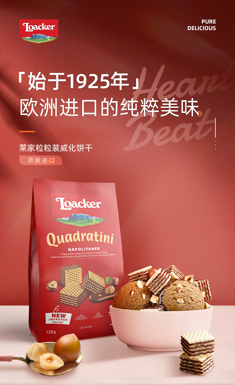 Loacker莱家威化ビスケット榛子チョコレート味125gイタリア輸入スナック結婚祝いお土産