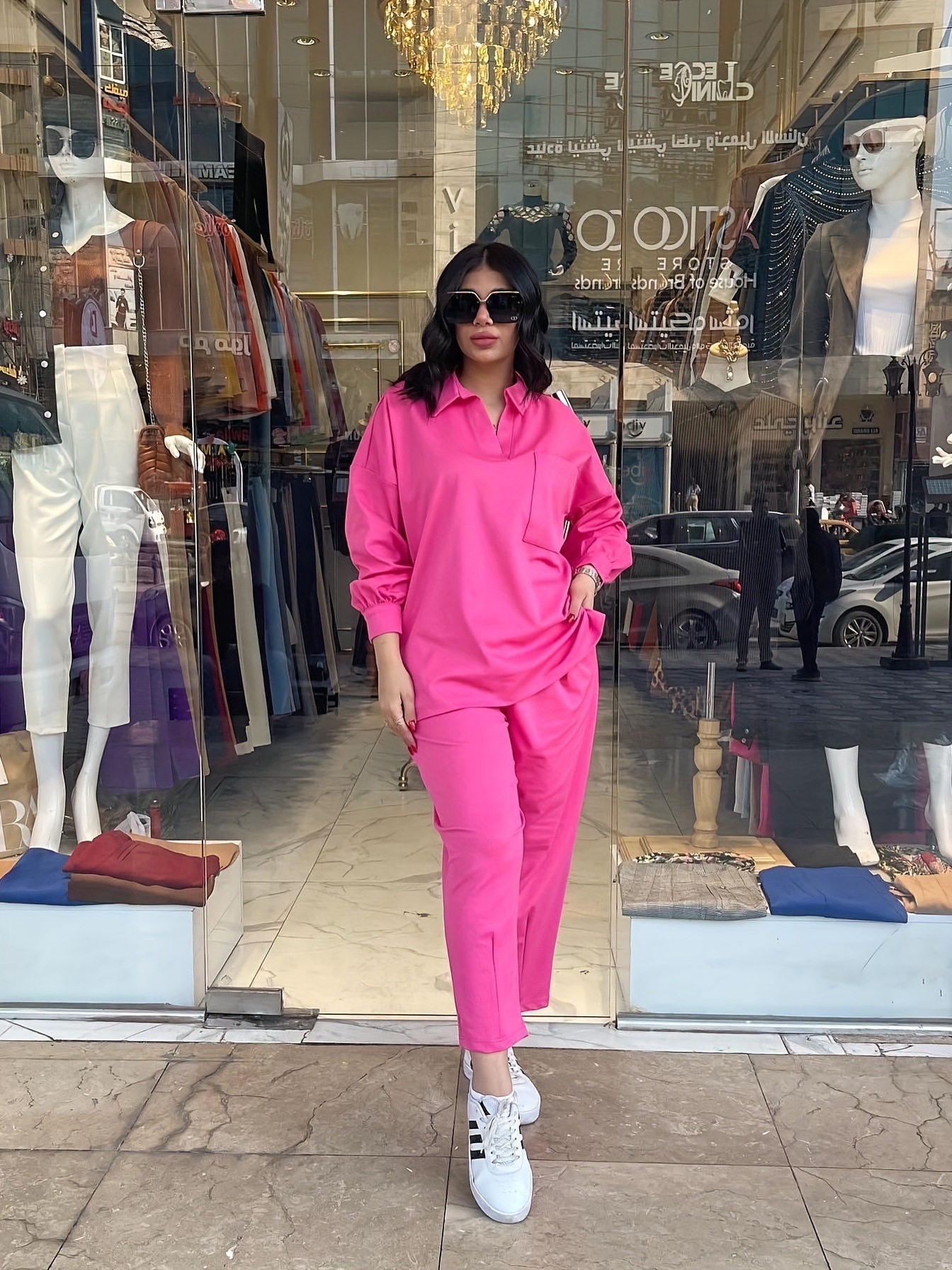 欧米の女性のファッションのカジュアルなスーツの2023秋の襟の長袖のシャツの腰の高い袋のカジュアルなズボン