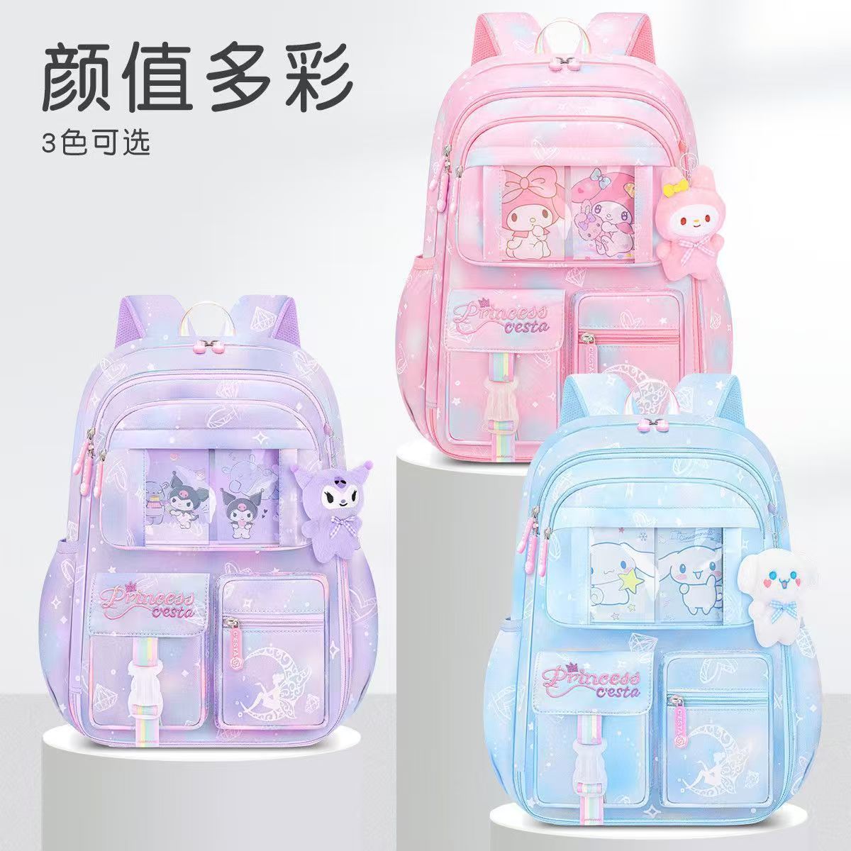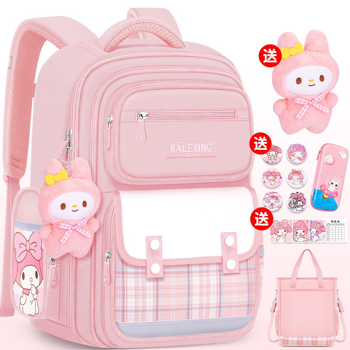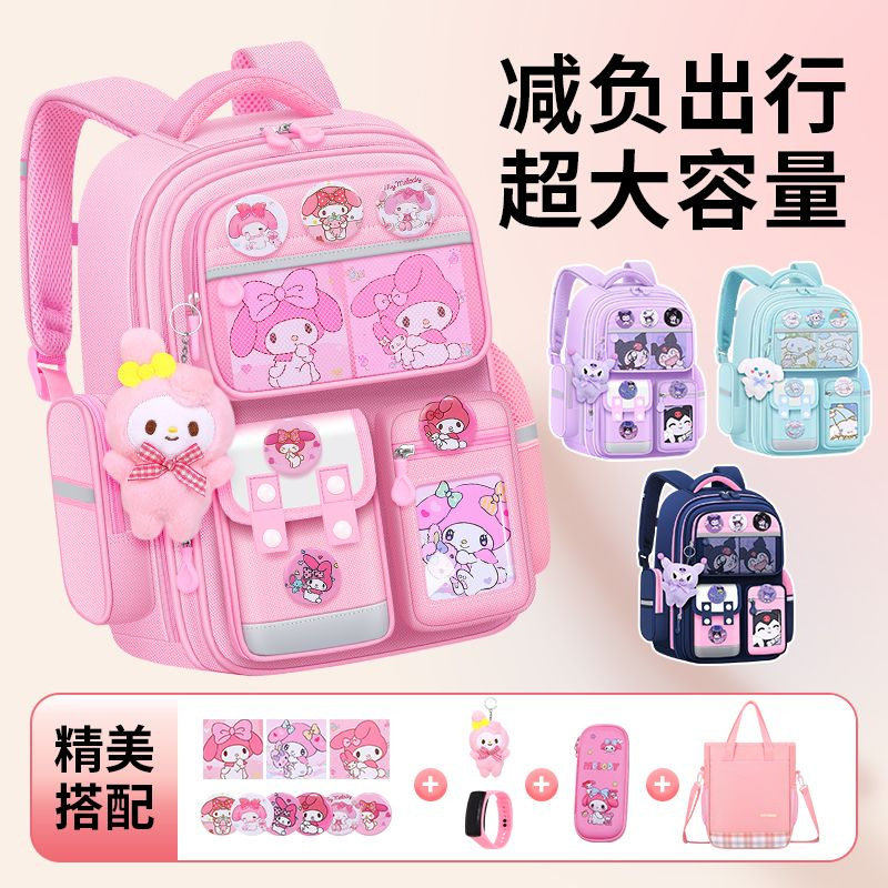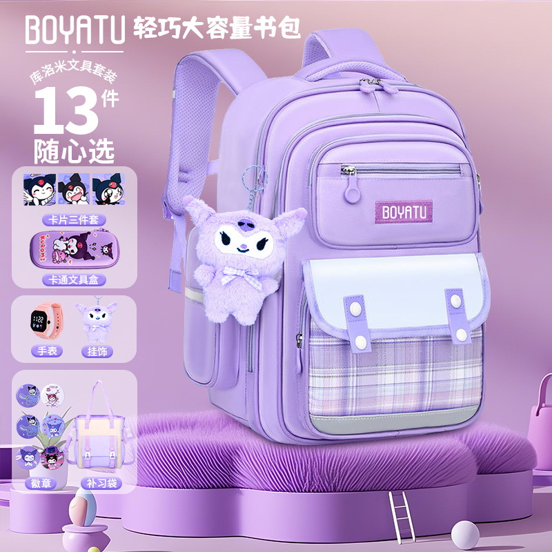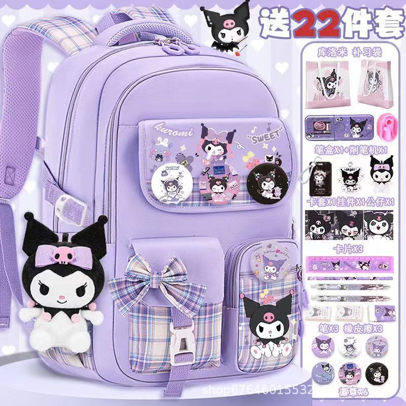 2024 新しい Kuromi 小学校バッグ 1-3-6 年生バックパック女の子大容量負担軽減脊椎保護