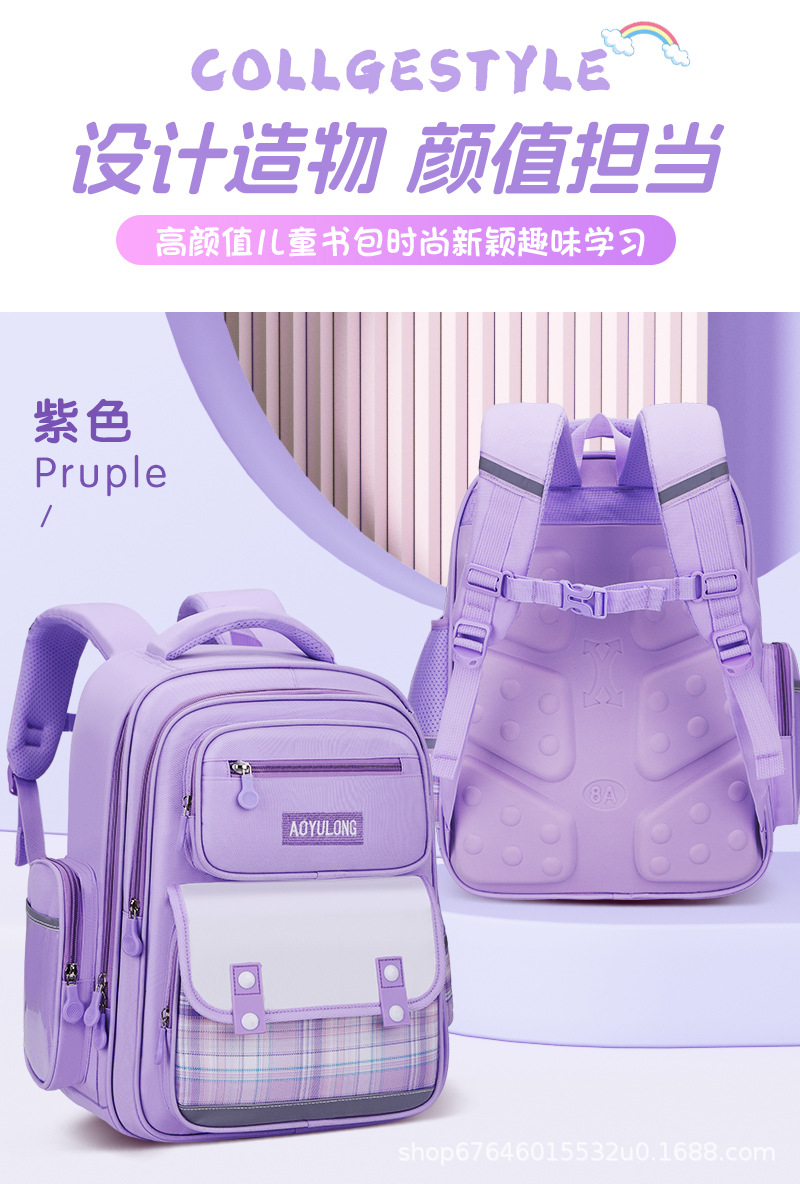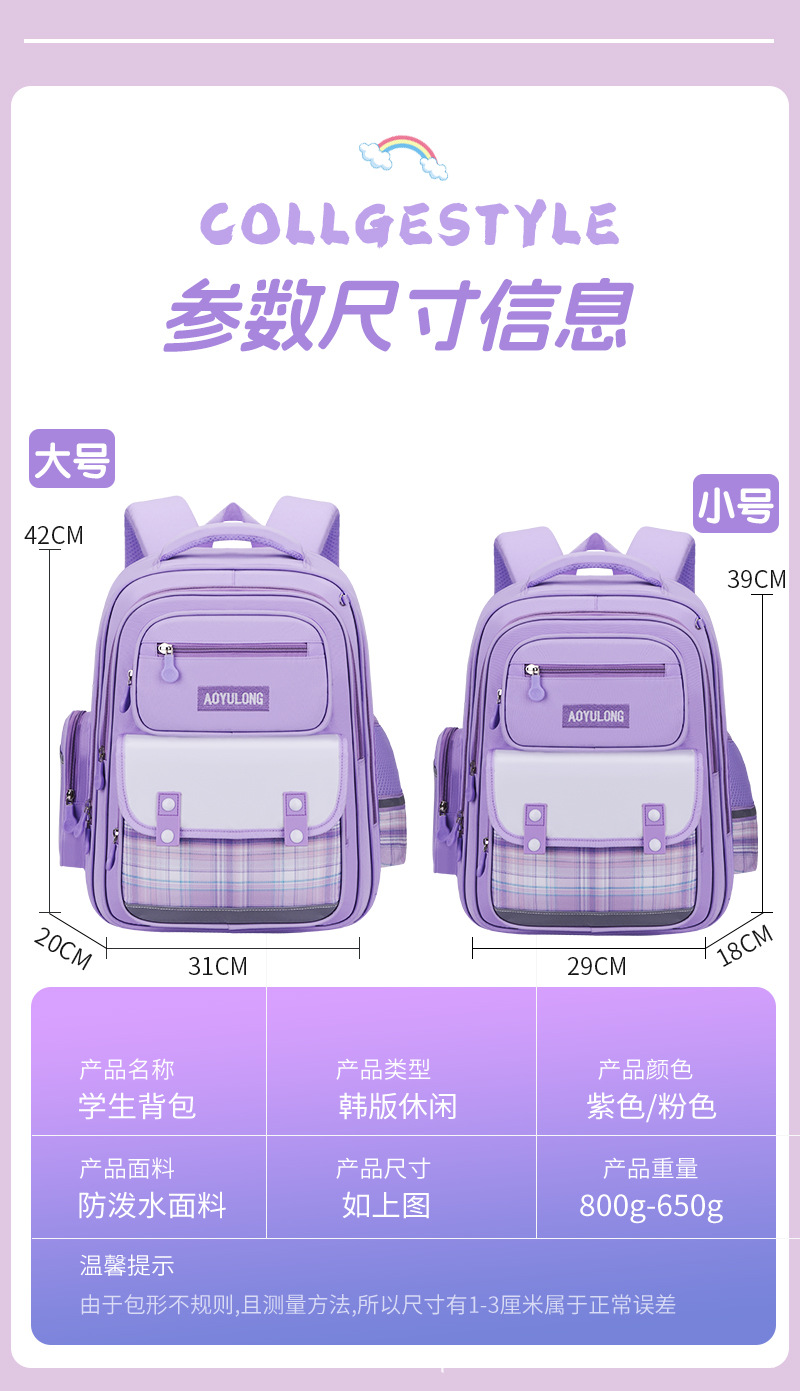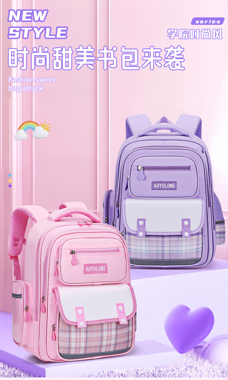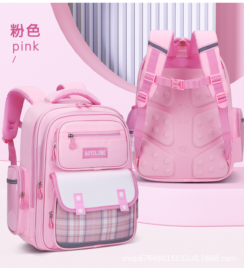 新款小学生书包女孩款6-14岁儿童书包大容量女生高颜格纹双肩背包