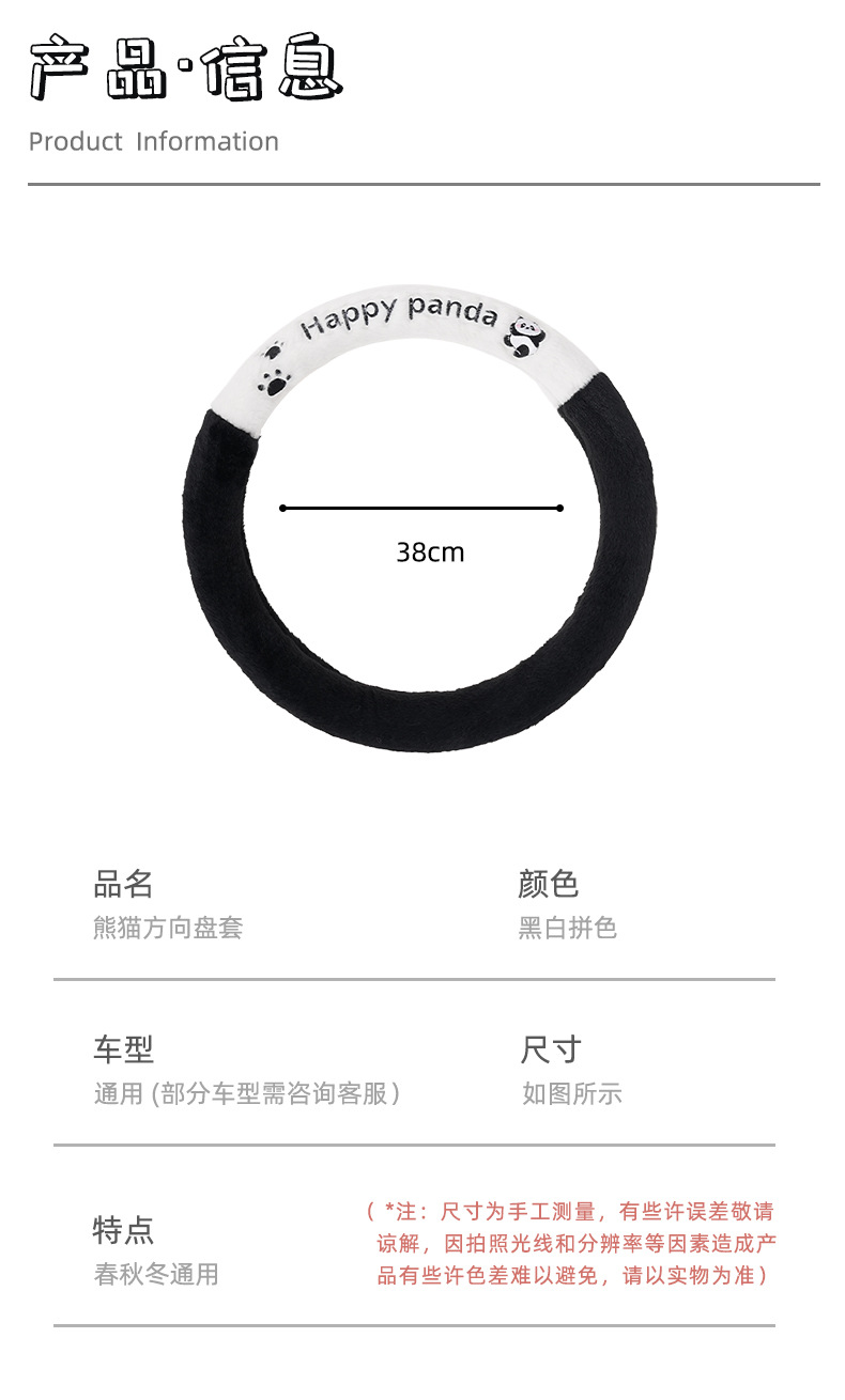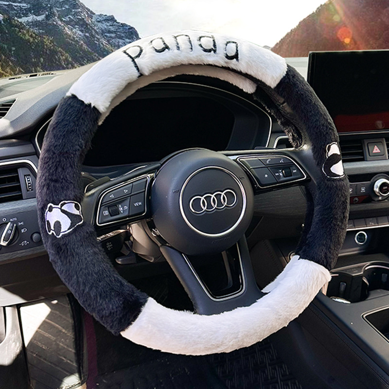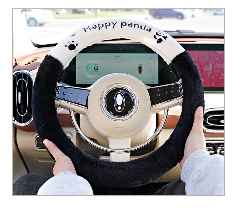 カラー ウサギの毛が手を振ってパンダのハンドルカバー,ウサギの毛の後ろ姿のパンダのハンドルカバー,ウサギの毛のパンダの耳のハンドルカバー