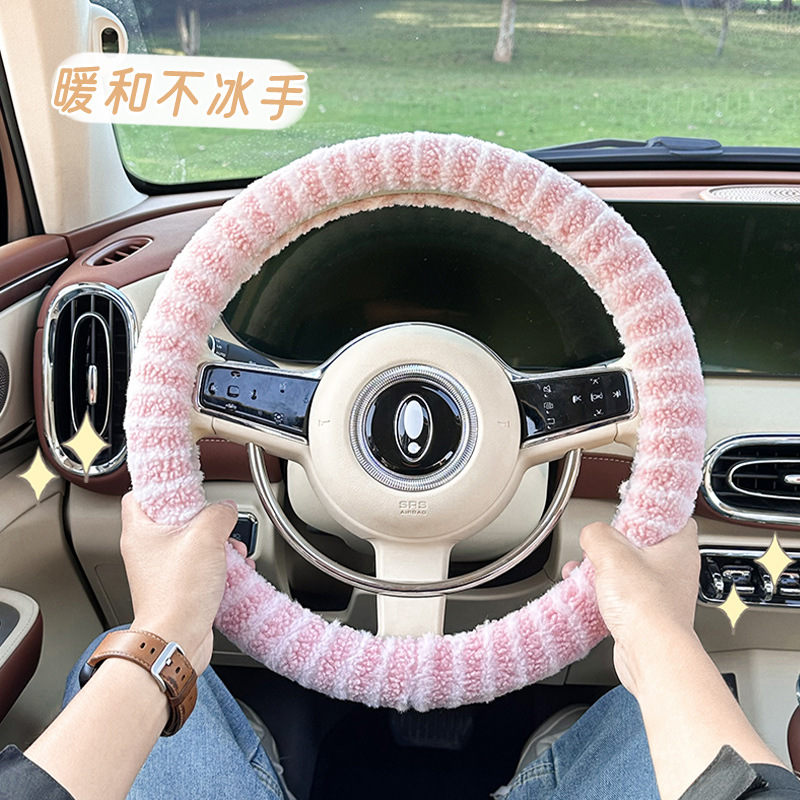 羊の小毛の刺繍の車のハンドルカバーのアニメのぬいぐるみのハンドルカバーの冬の保温と快適な車のハンドルカバー