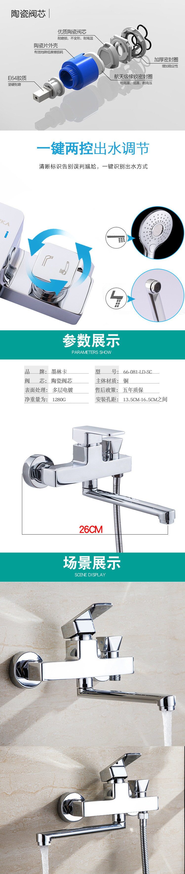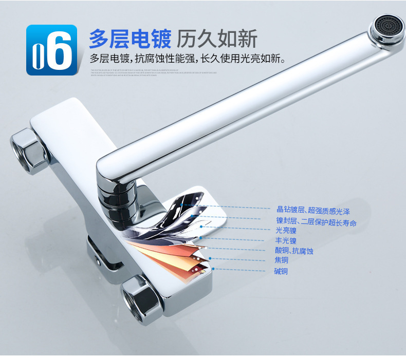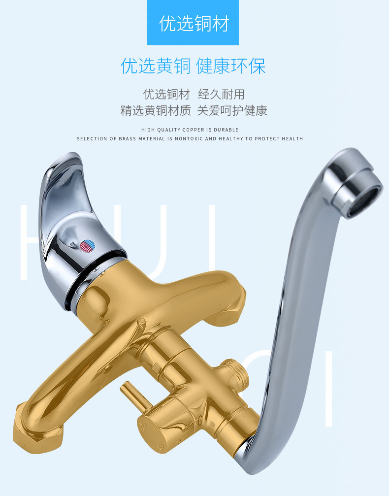 クロスボーダーロシア二段分水バスタブ蛇口亜鉛合金ロング口ダブル機能キッチン三連式蛇口