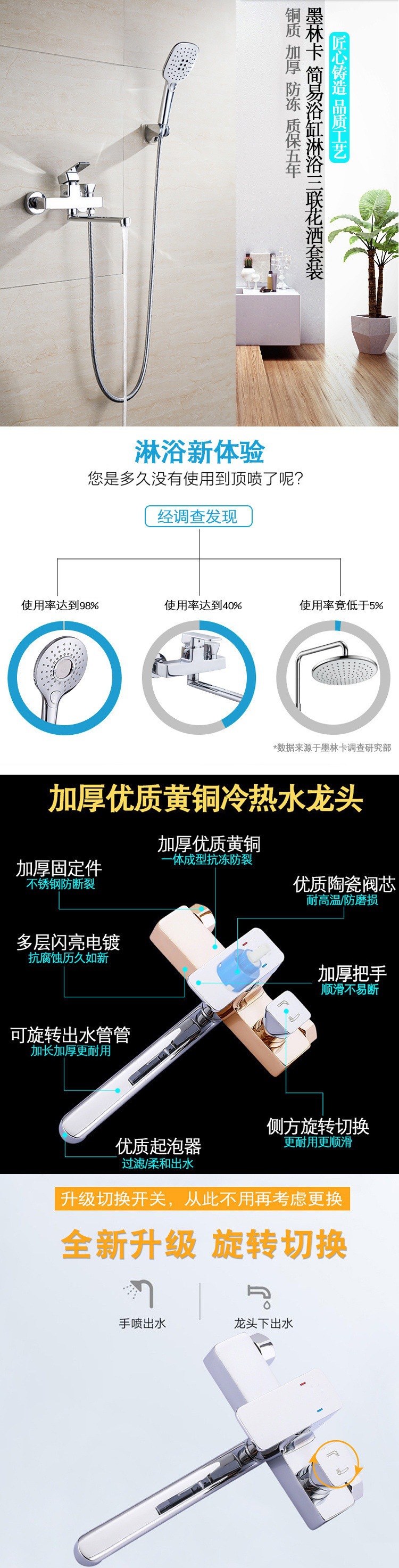 簡易シャワー延長回転バスタブ冷熱蛇口浴室暗装銅製シャワー三連シャワー混合水弁