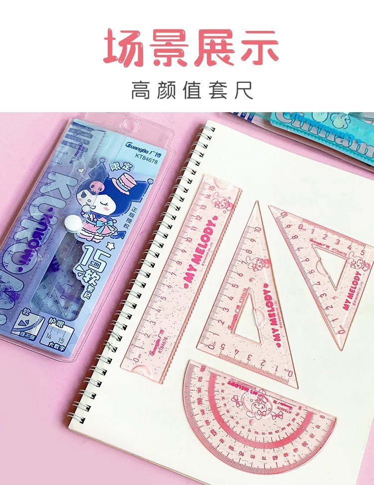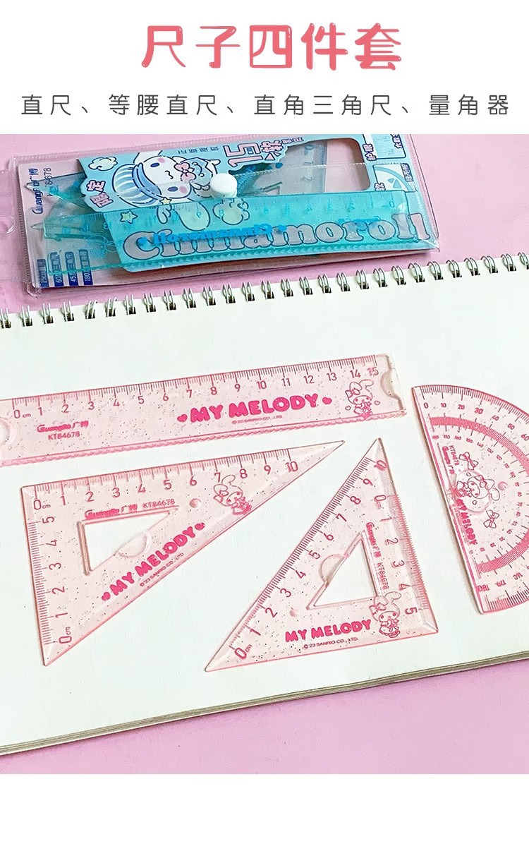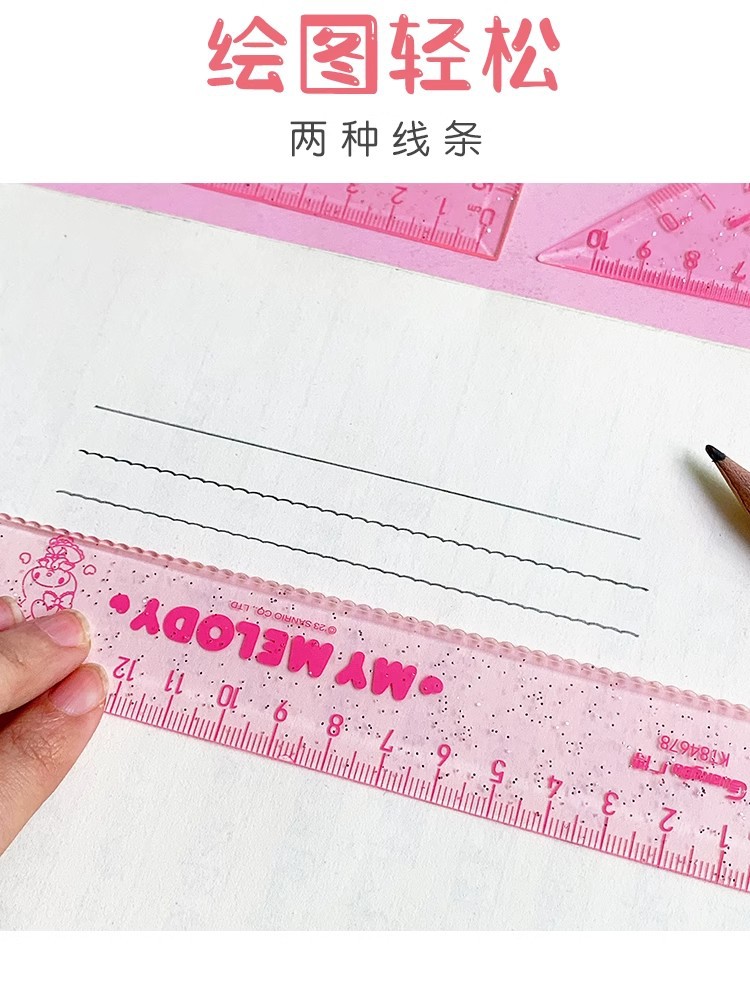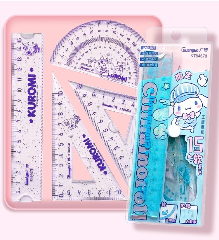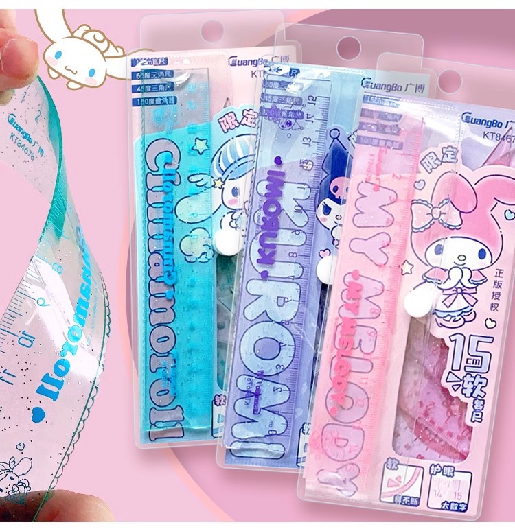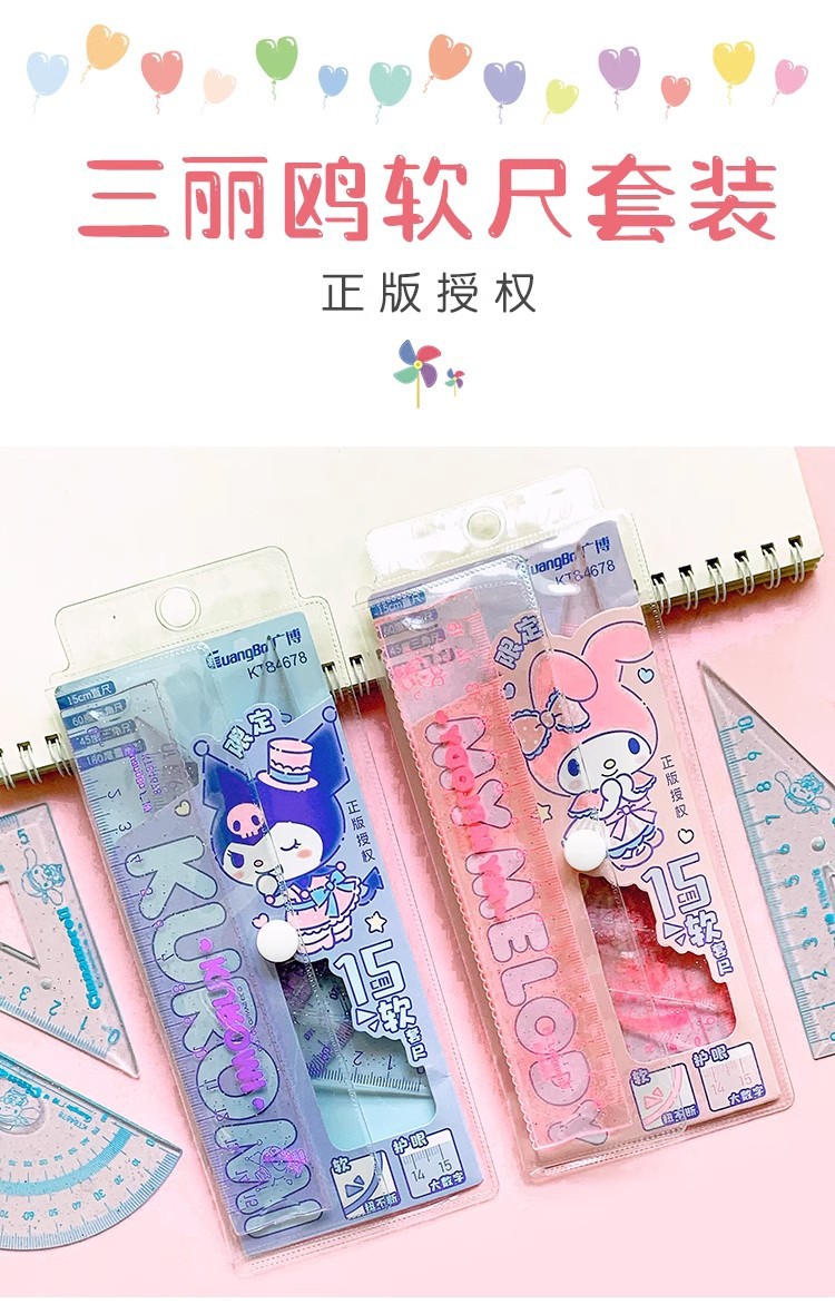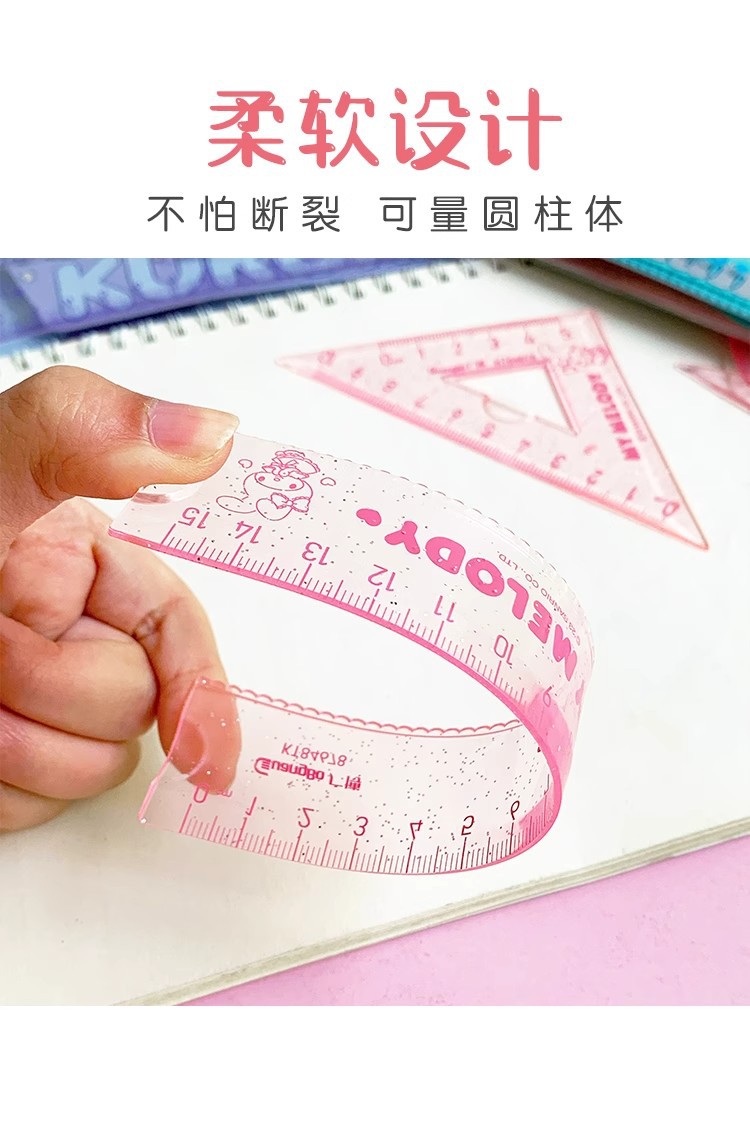 サンリオソフト定規セット小学生クロミ15cm定規4点セット透明ソフト定規波線付き