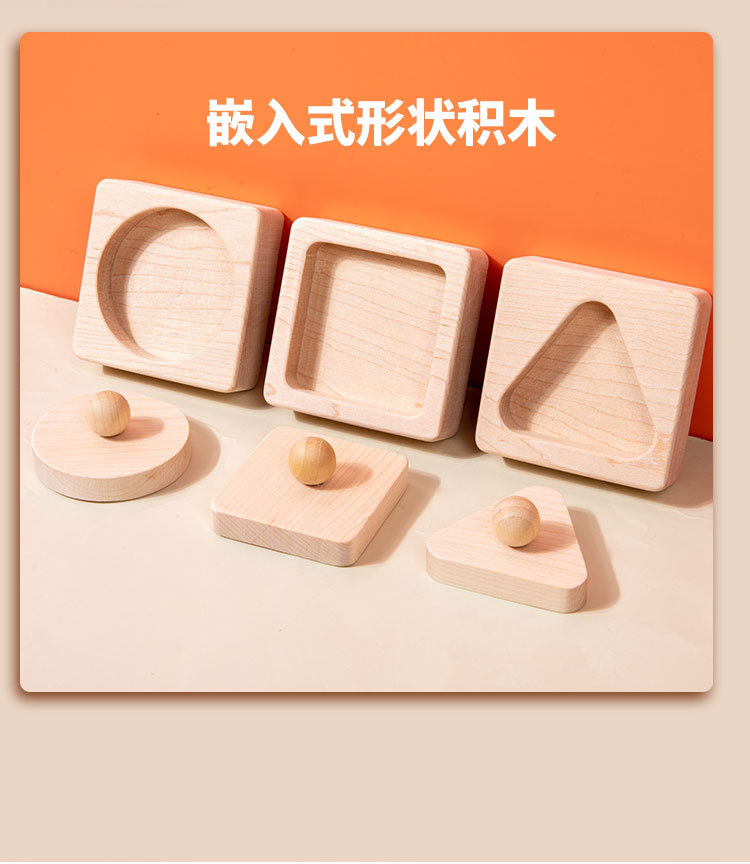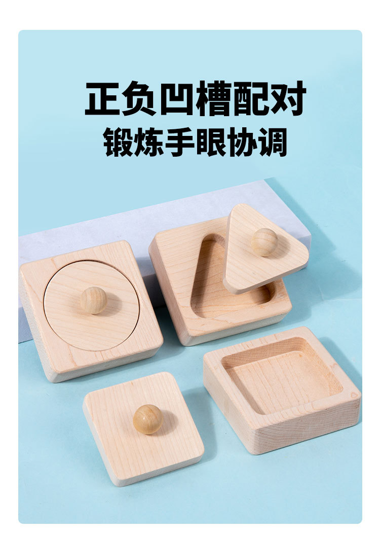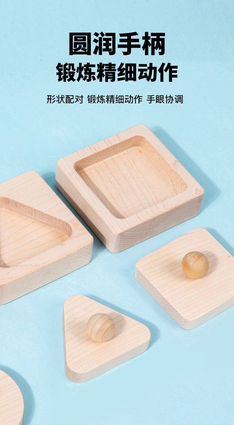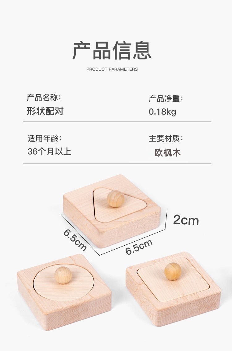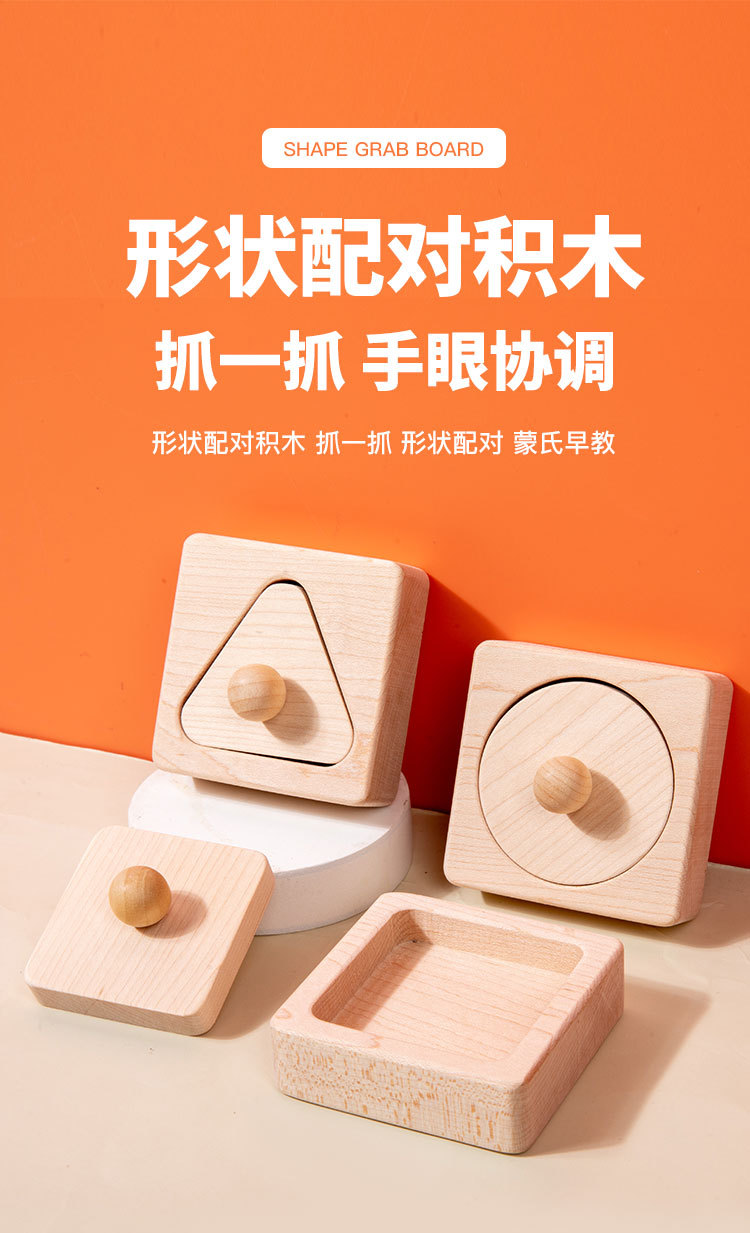 モンテッソーリ鏡蒙氏教具形状ペア玩具木製0-3-6歳子供手掴みパズル