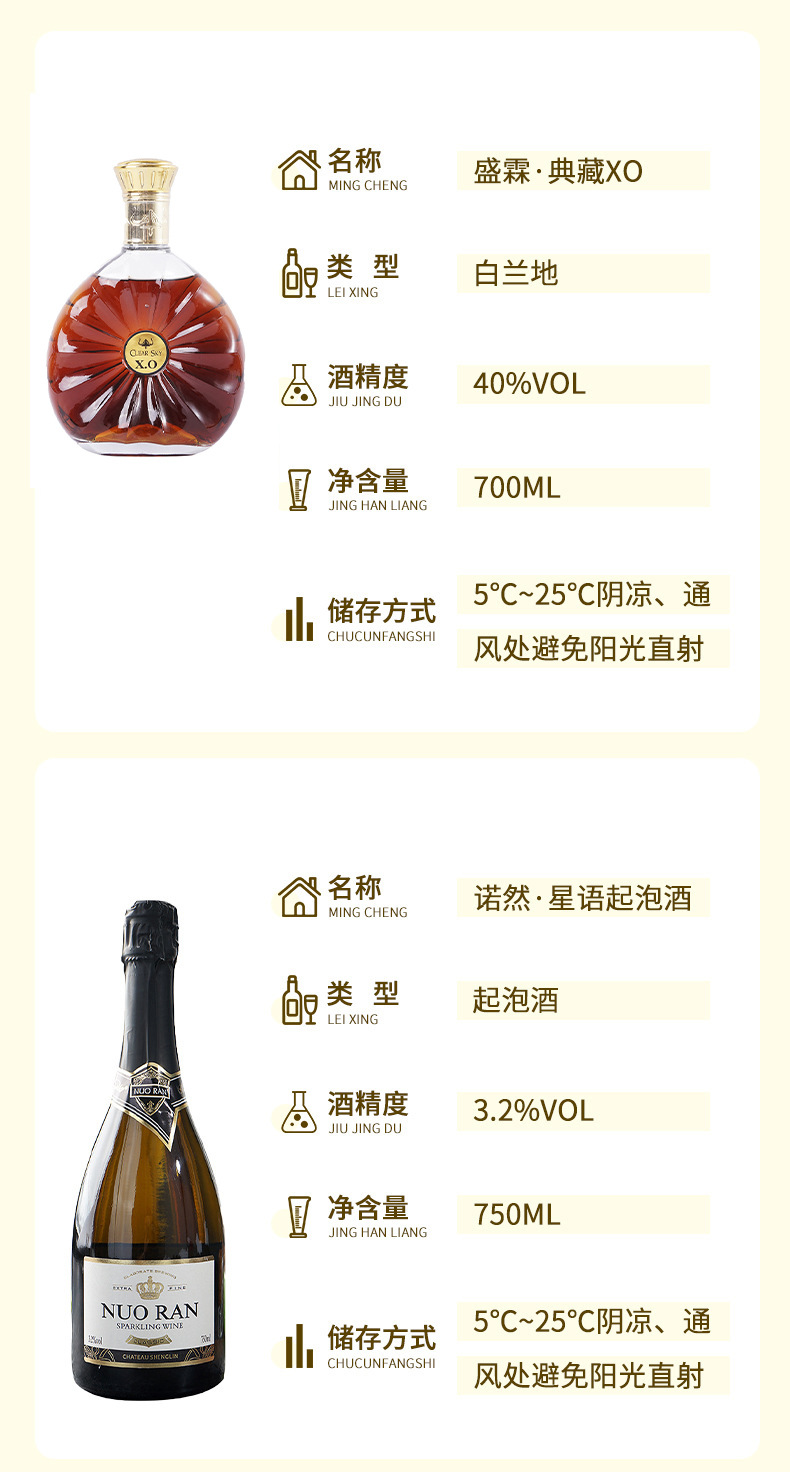 パッケージ仕様 ウイスキーセット (8本),700mlxoブランデー,金佰利ウイスキー,火鹿ウイスキー,アイスウイスキー,諾然星語汽泡酒,シルバーラム酒,ゴールドラム酒,金酒