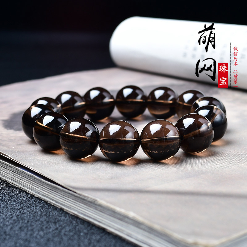 天然茶水晶手链 冰种烟晶墨晶手链 水晶手串送礼品水晶饰品送男友