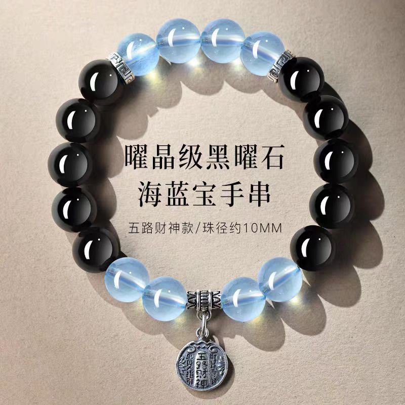 天然黒曜石緑檀木手串女金海藍宝紅瑪瑙ブレスレット黄水晶プレゼント彼女本命