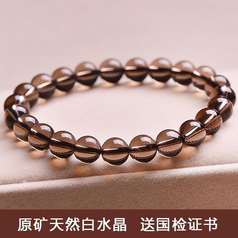 天然高氷ガラス体茶晶ブレスレット女性水晶男天然氷種水晶煙晶茶晶墨晶手串