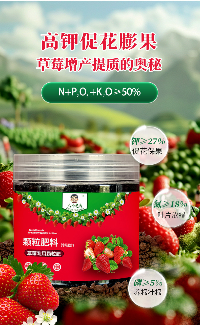 いちご肥料専用肥料家庭用鉢植え汎用型徐放複合有機肥料顆粒座果期増甘土培