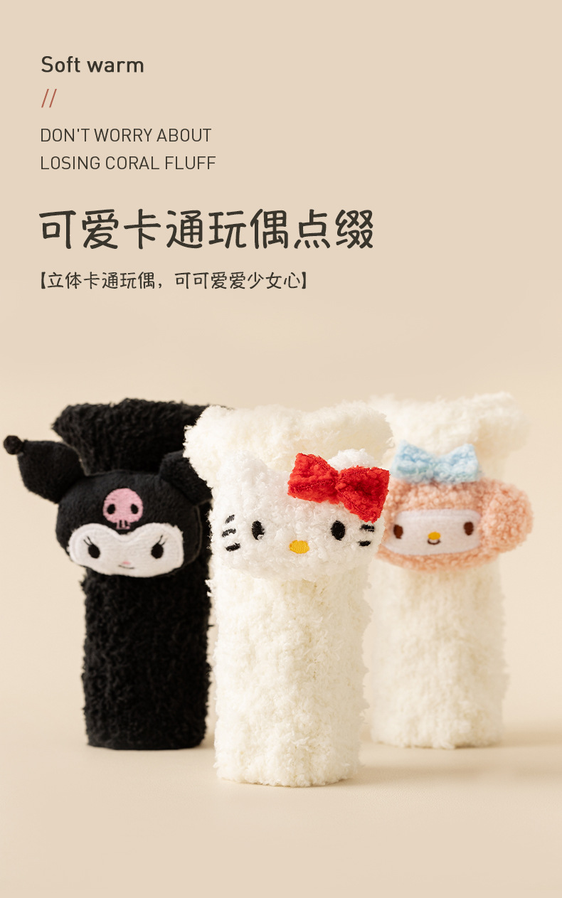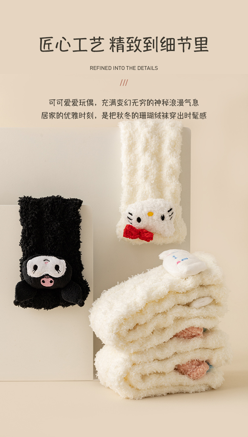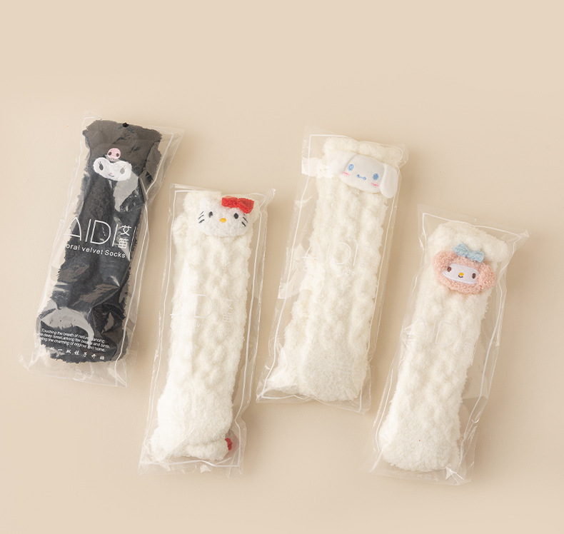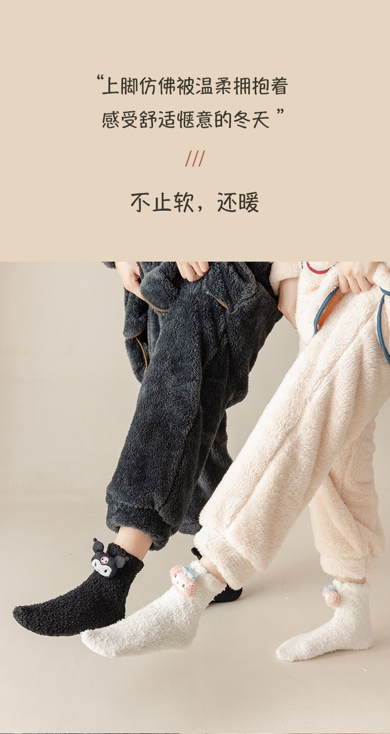 サンゴフリースソックス レディース 厚手 毛抜けなし 漫画柄 ふわふわ ジャカード 睡眠用ソックス 床滑り止め 保温 ホームソックス