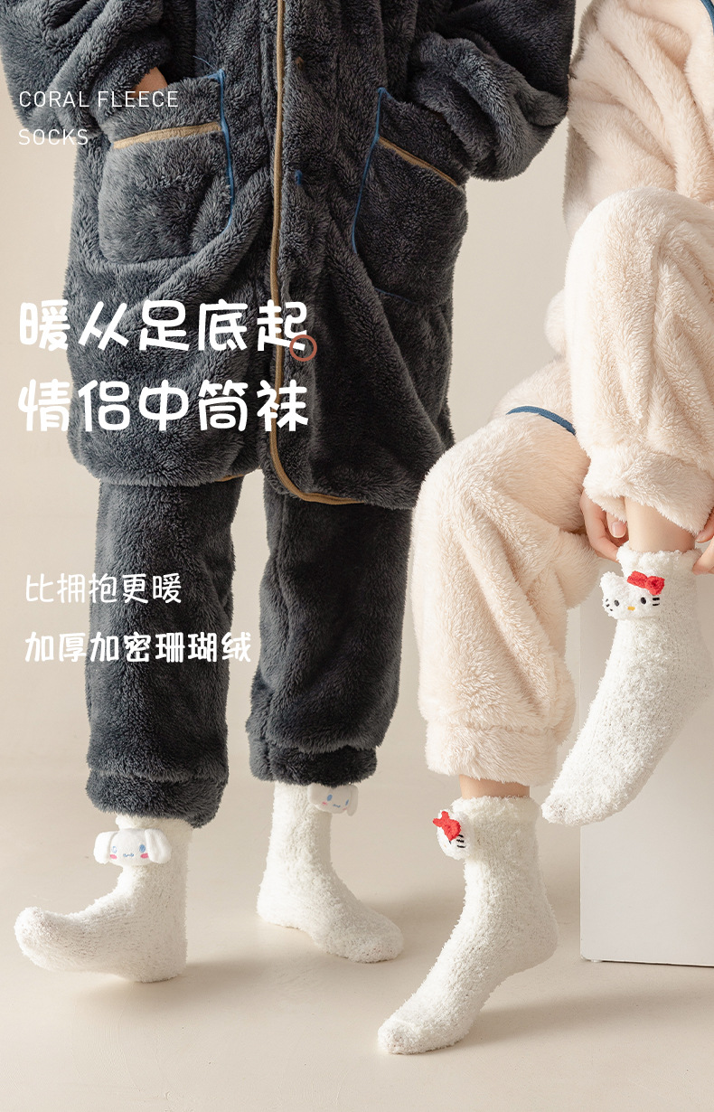 クリスマスプレゼント秋冬スタイル親子コーラル睡眠靴下男性新年カップル漫画赤いギフトボックス靴下女性