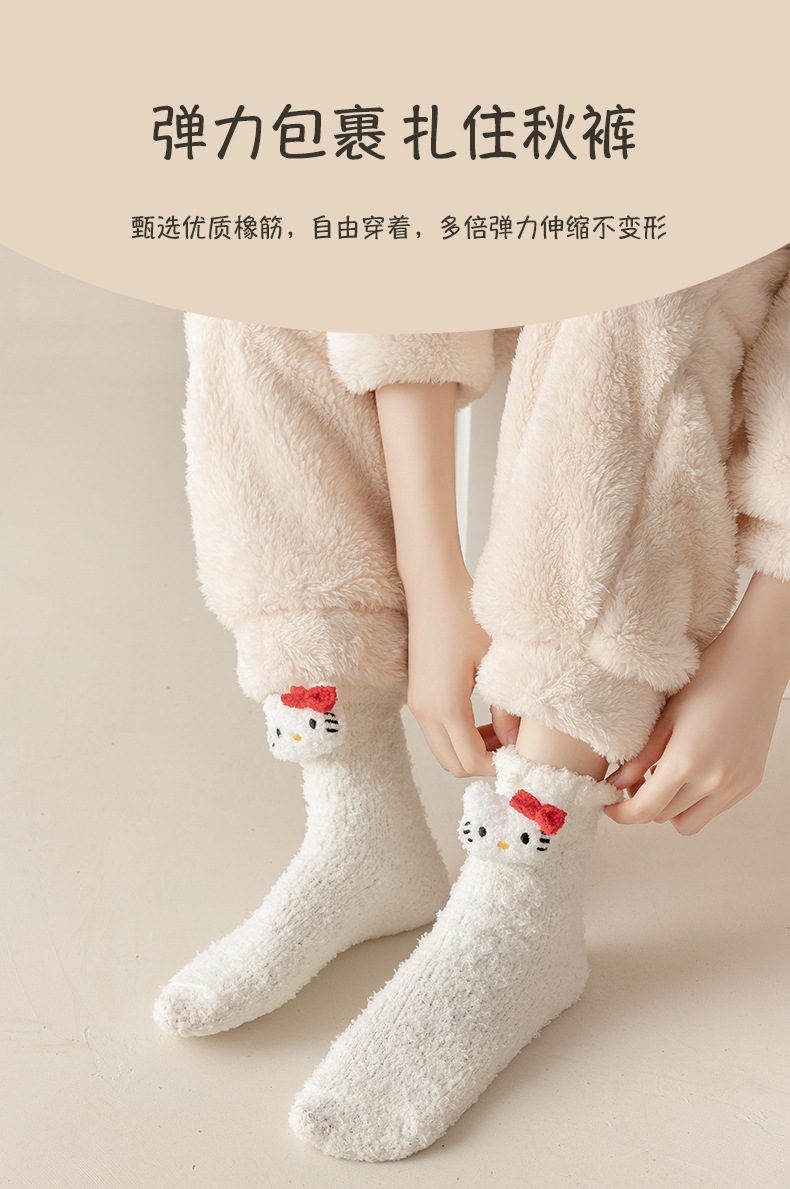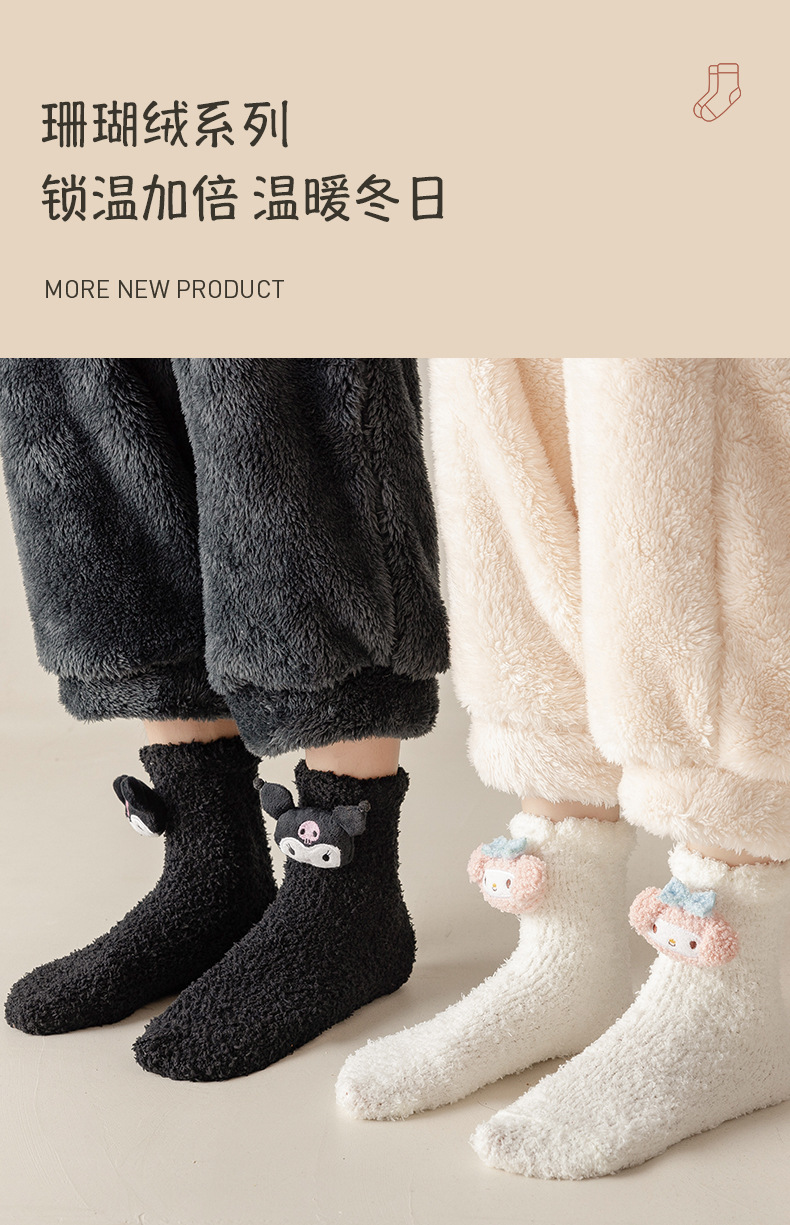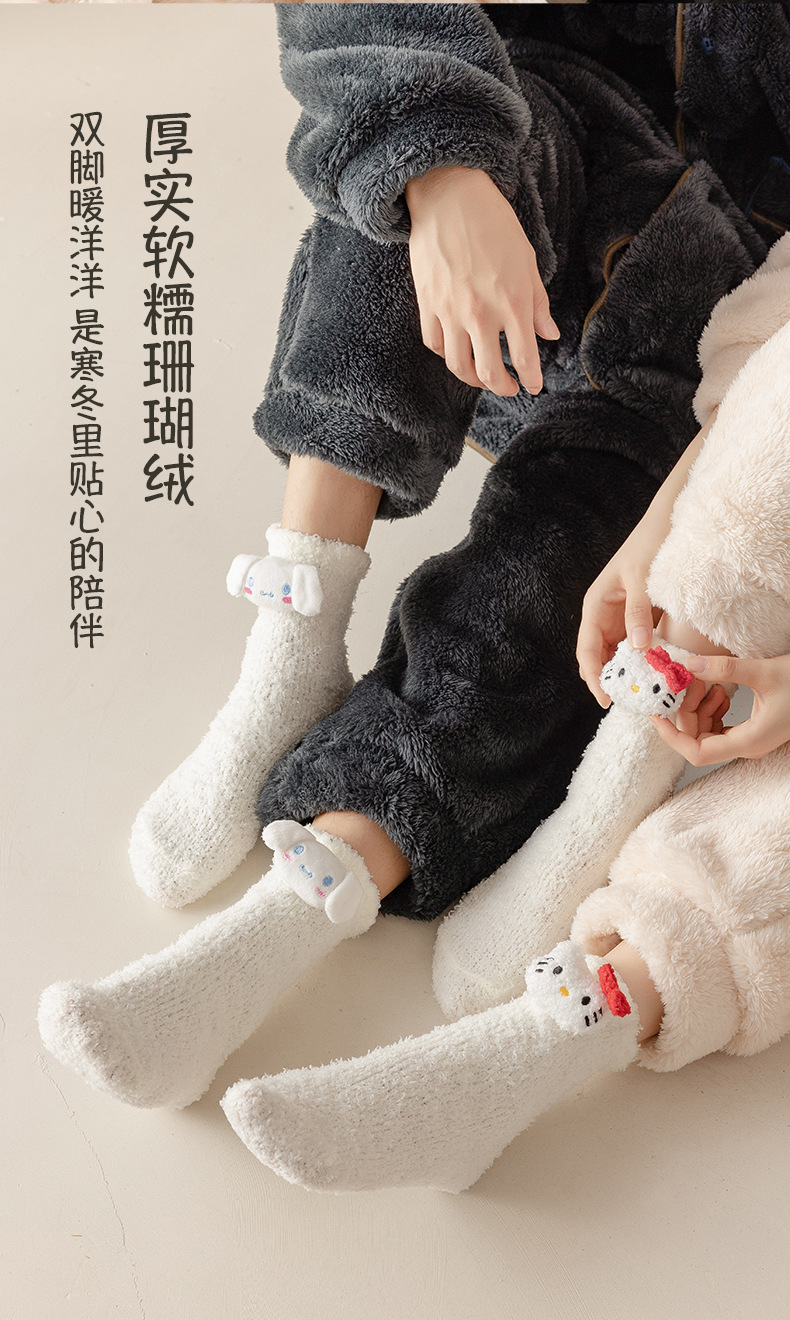 珊瑚の毛の靴下の女性の秋冬のベルベットの厚い保温の睡眠の靴下のかわいい漫画の中の筒の家の床の月子の靴下