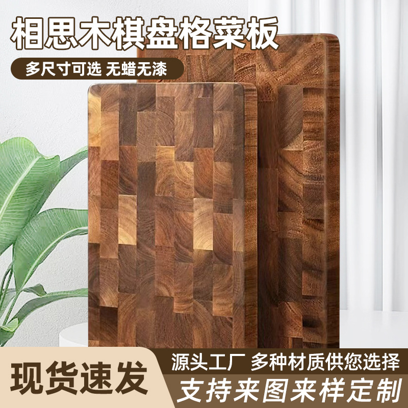 跨境相思木抗菌防霉菜板家用实木砧板双面砧板几何立拼木制切菜板