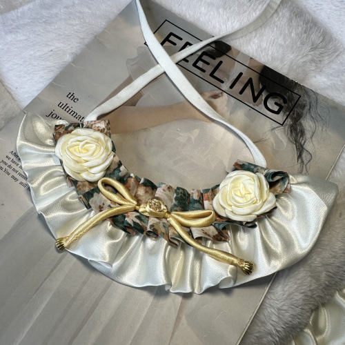 猫の首を囲むペットのアクセサリーの首輪の蝶結びの布の襟のレースの口を囲む犬の口の水タオルのネックレス