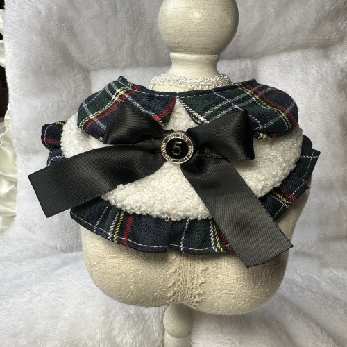 韓国版蝶結びペットレースの偽襟レースの唾タオルの格子犬のアクセサリー猫の口を囲む牛のマフラー