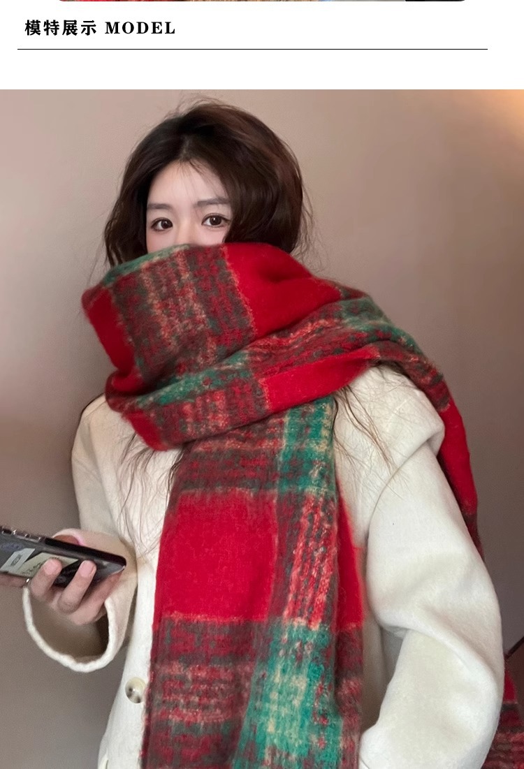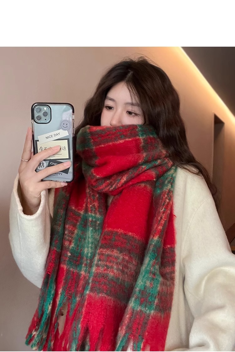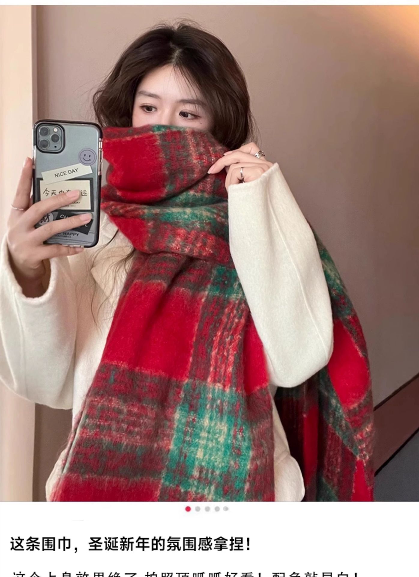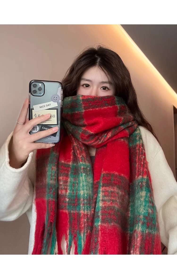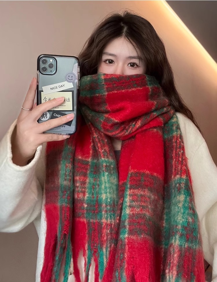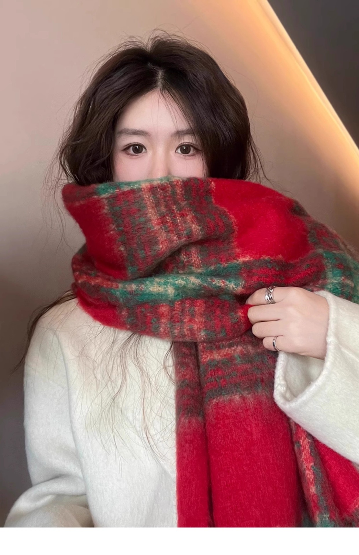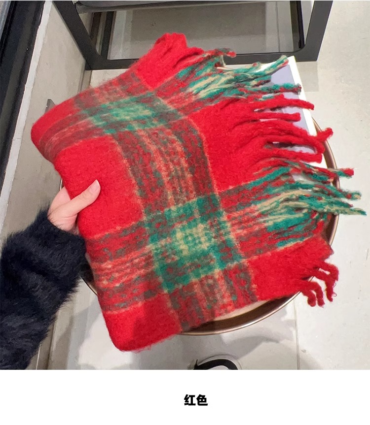 大きな赤いクリスマスの雰囲気はカシミヤのマフラーの女性の冬の高級感のフリンジの馬の毛の厚いマフラーの学生のマントをまねます。