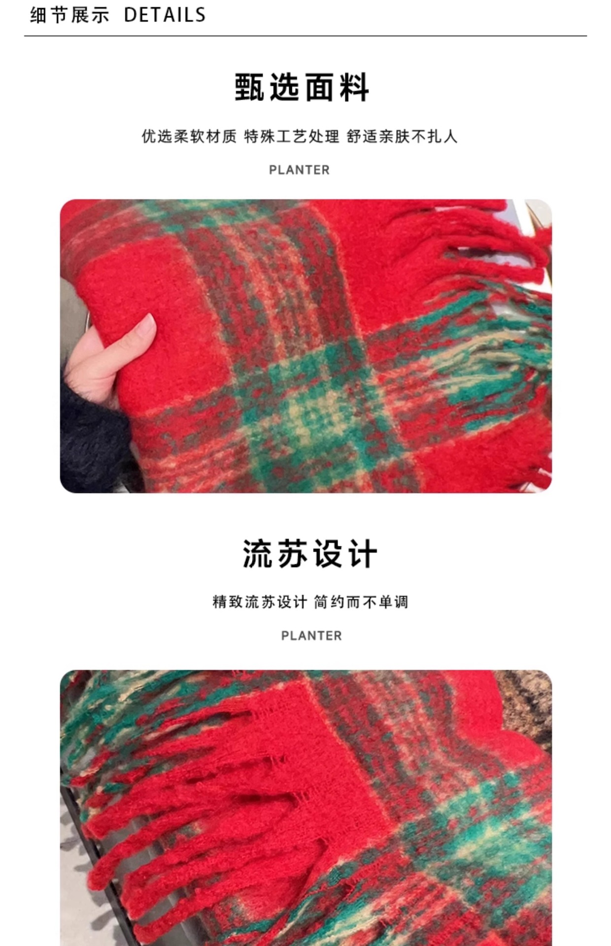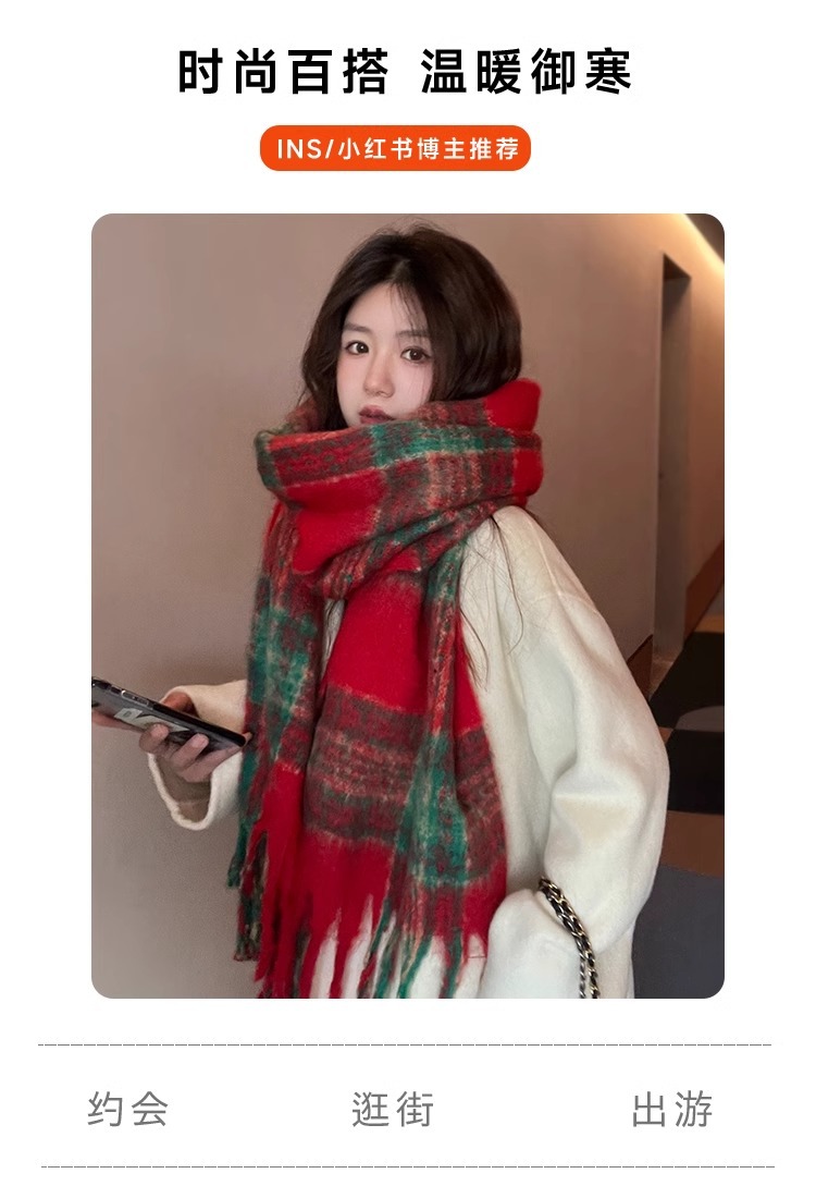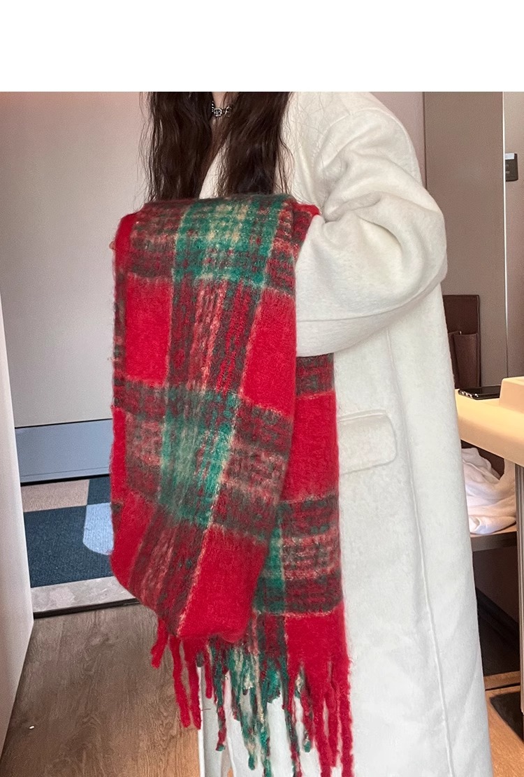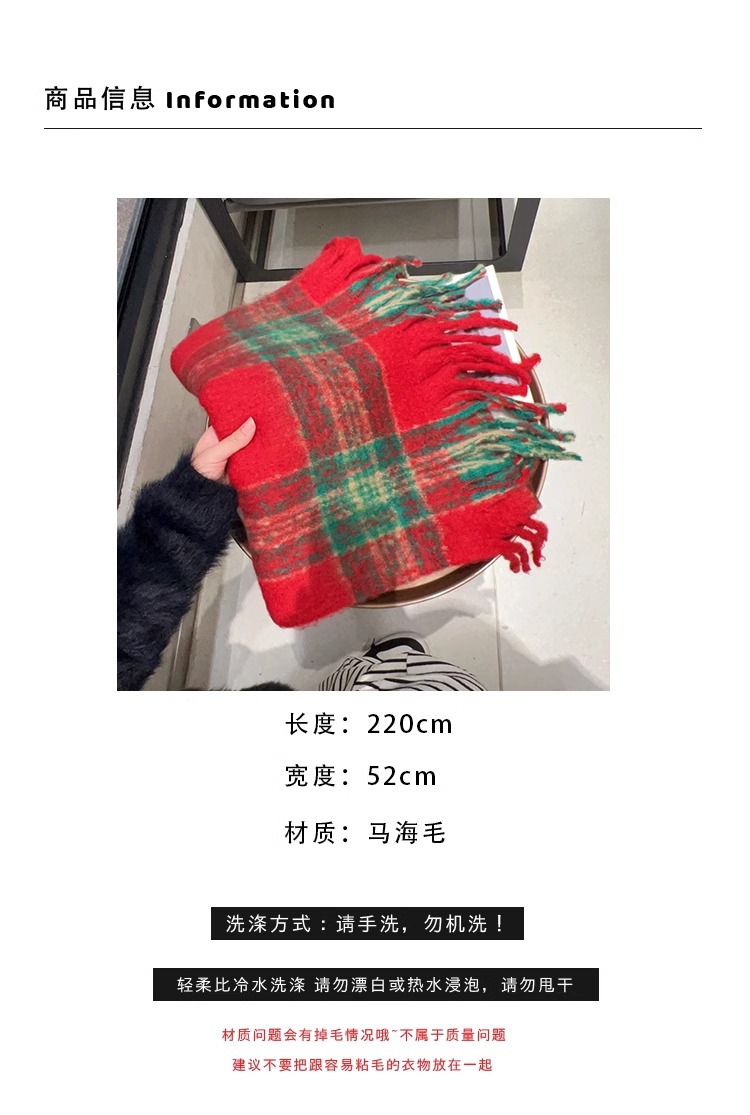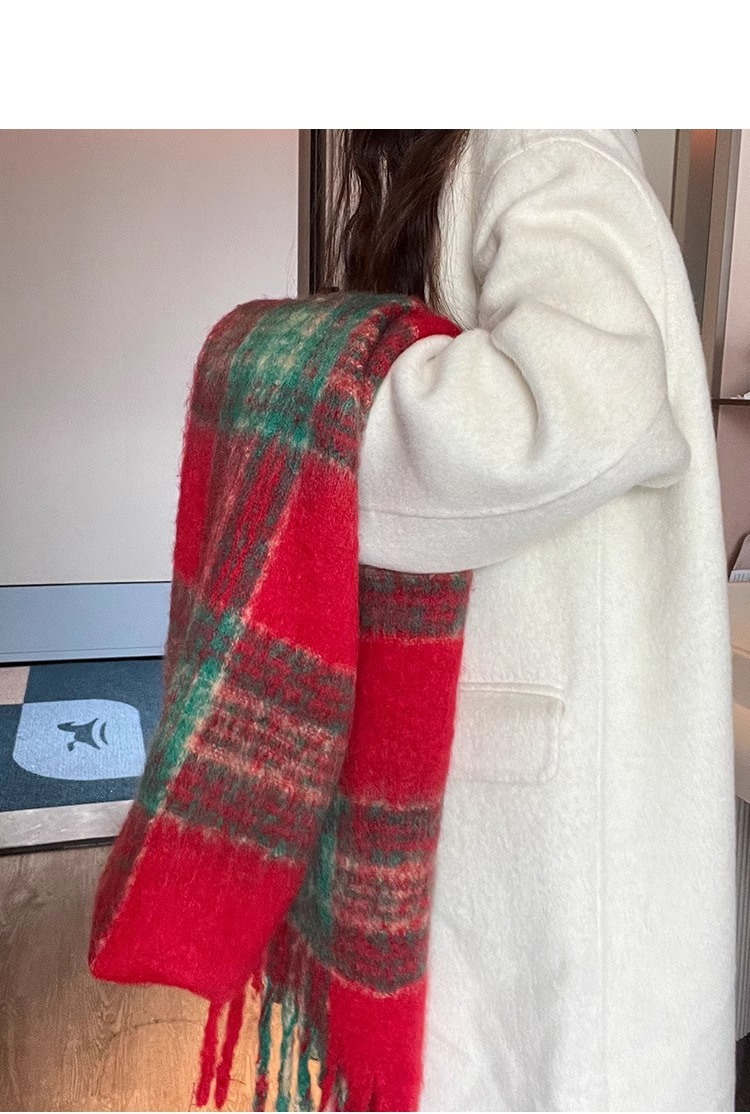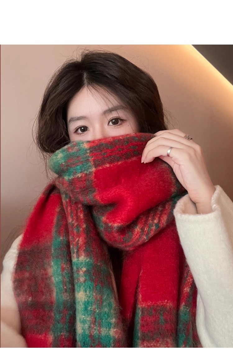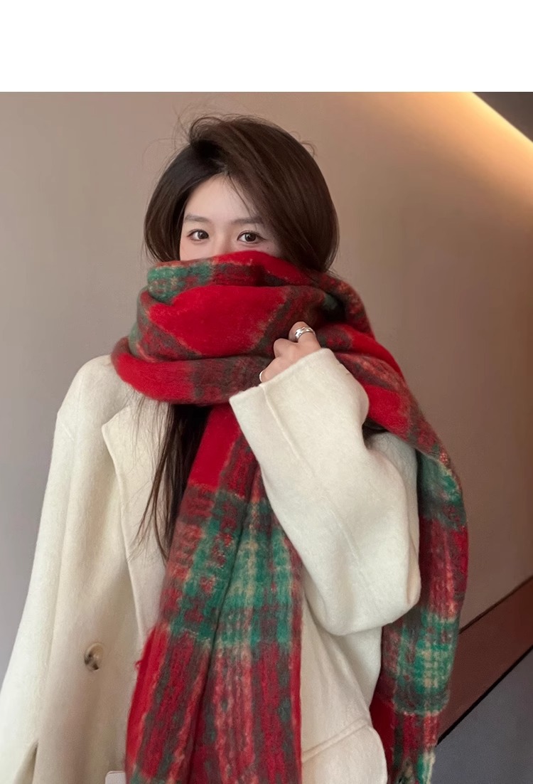 大きな赤いクリスマスの雰囲気はカシミヤのマフラーの女性の冬の高級感のフリンジの馬の毛の厚いマフラーの学生のマントをまねます。