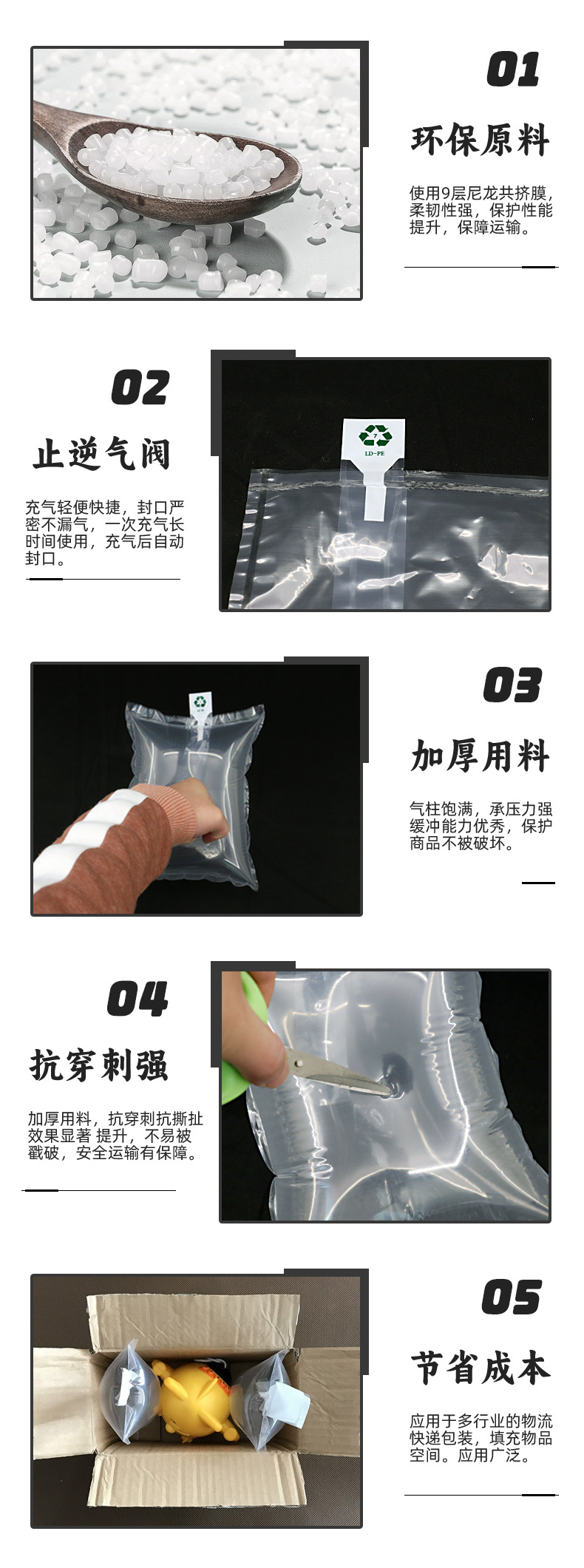 厚い気泡柱ガス柱袋耐震包装袋泡宅配便包装空気袋充填袋コイル充填機