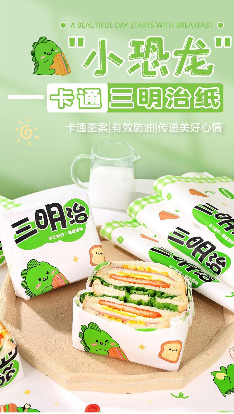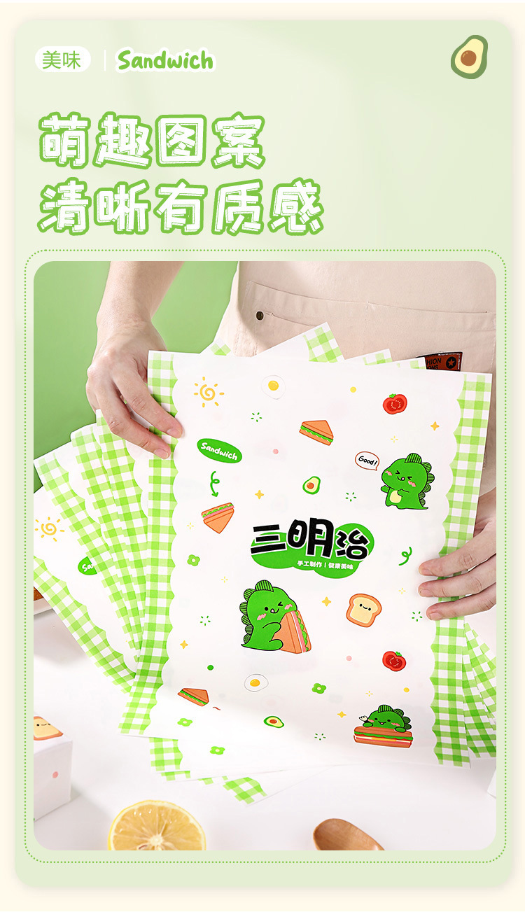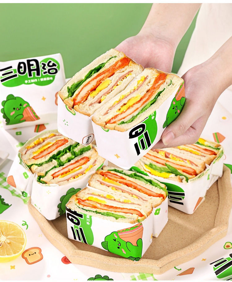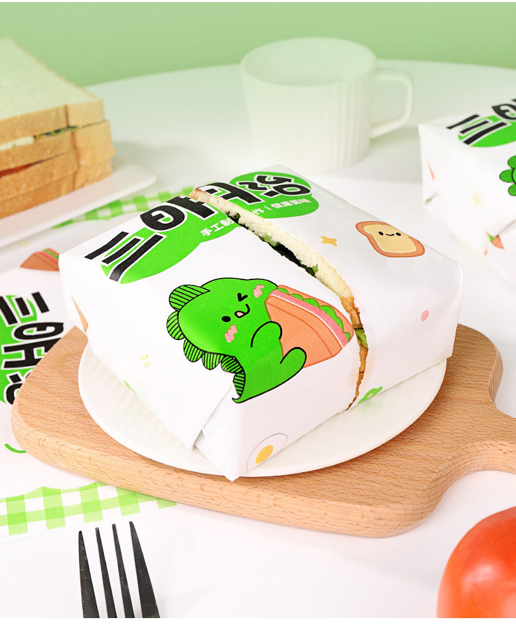 小恐竜サンドイッチ包装紙食品級牛皮出店業務用ハンバーグおにぎりプラスチックサンドイッチ防霧袋
