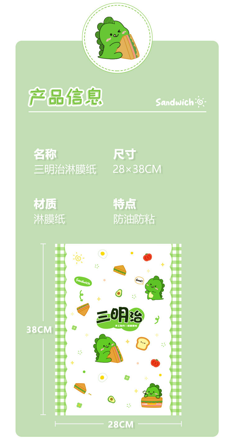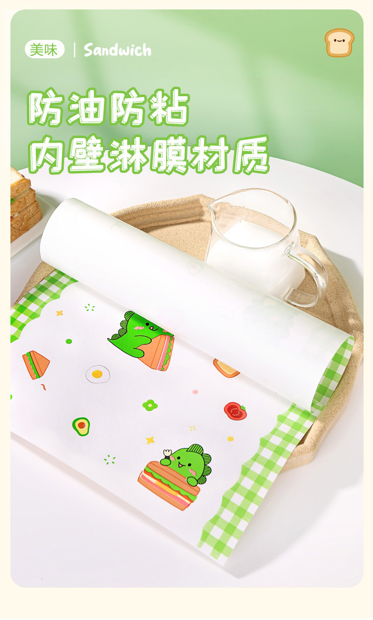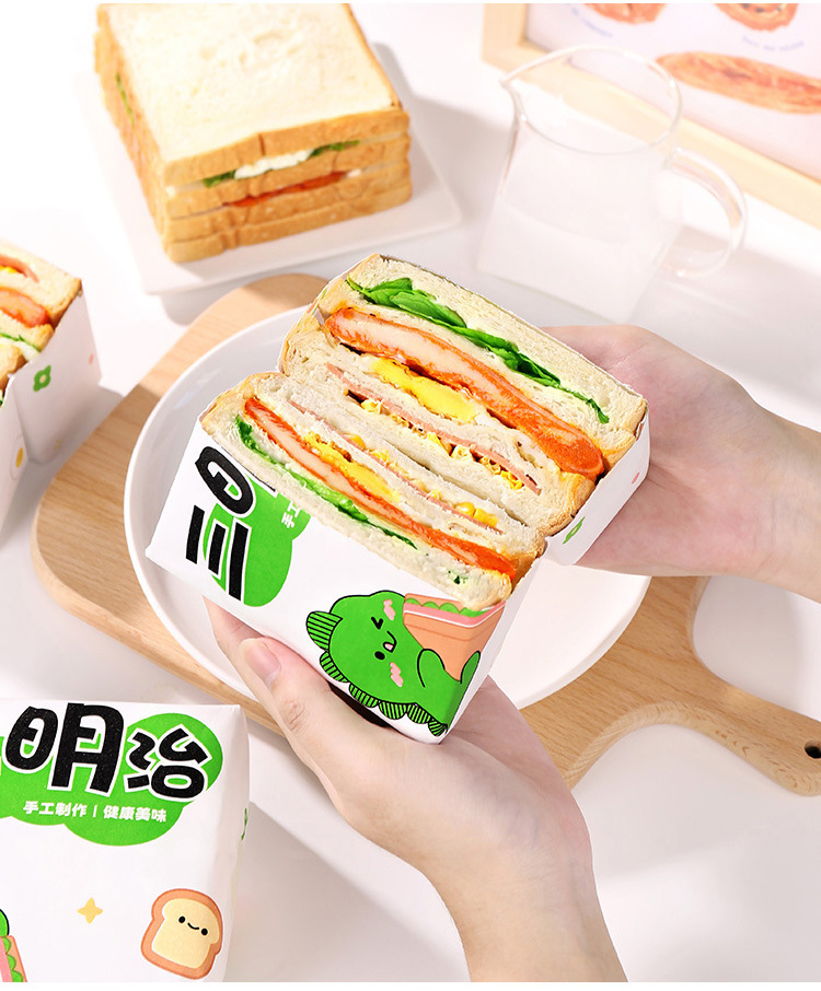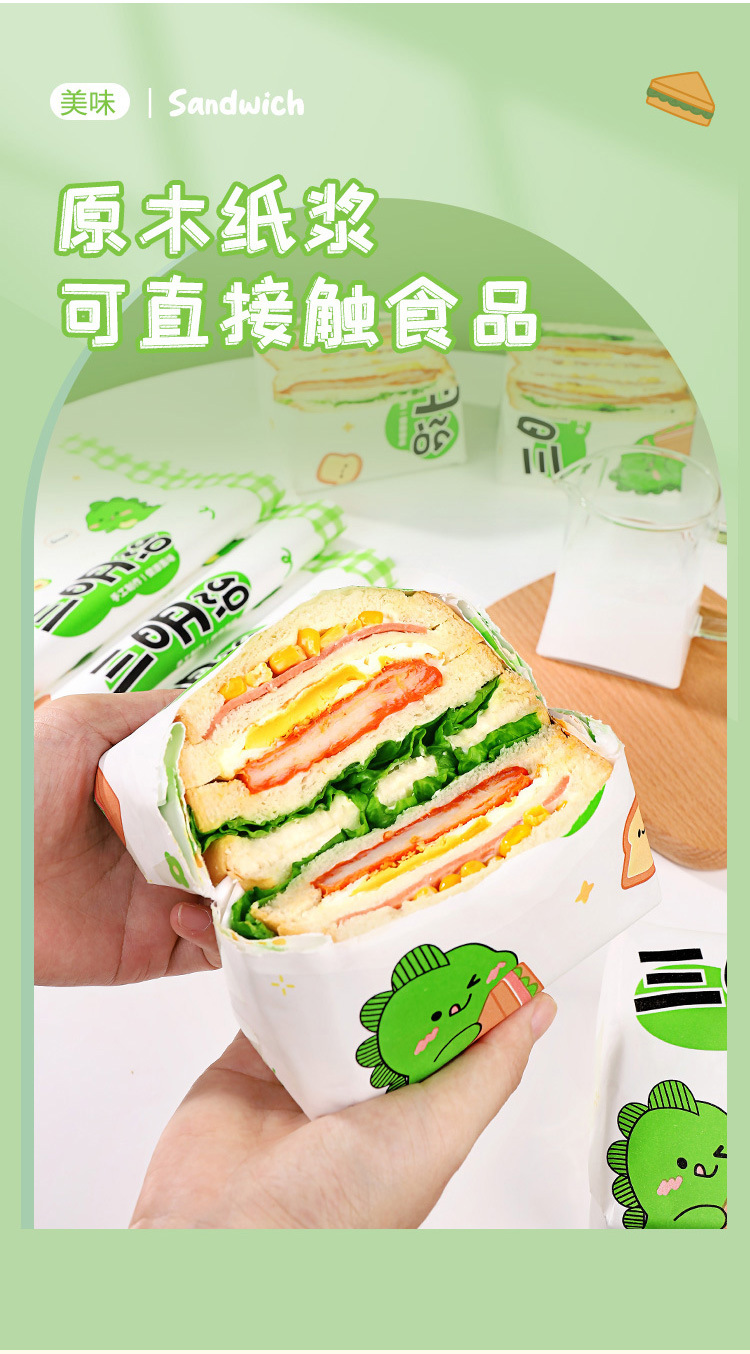 小恐竜サンドイッチ包装紙食品級牛皮出店業務用ハンバーグおにぎりプラスチックサンドイッチ防霧袋
