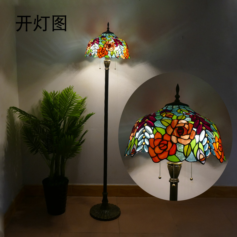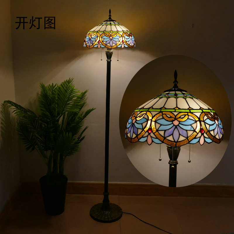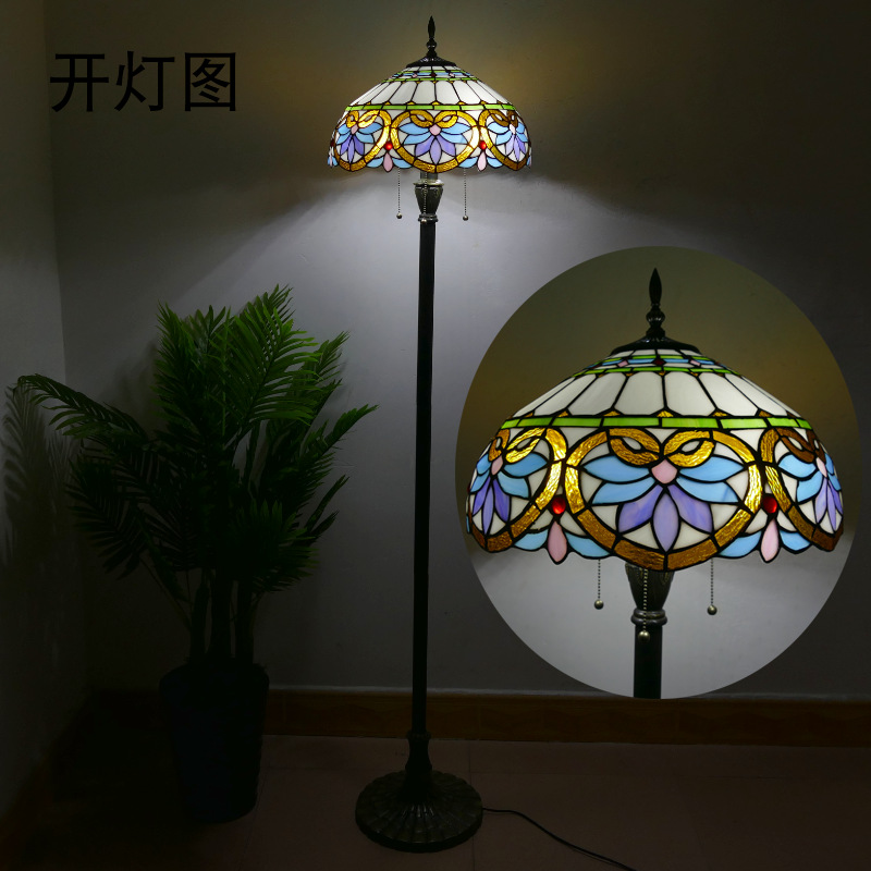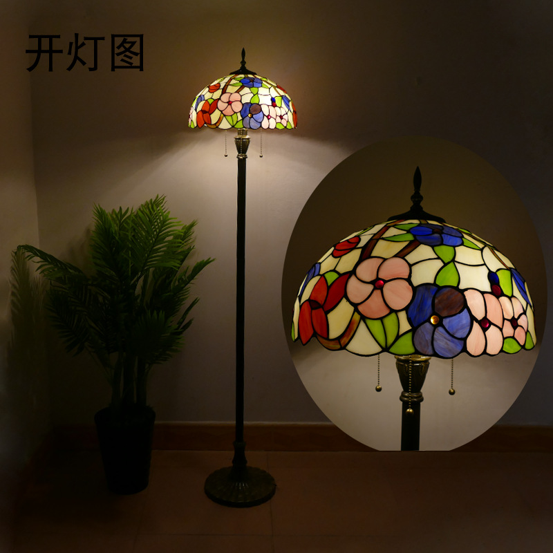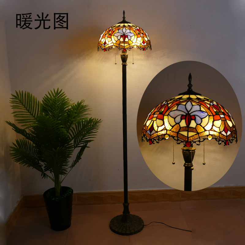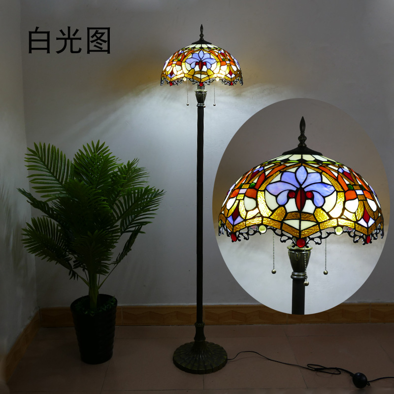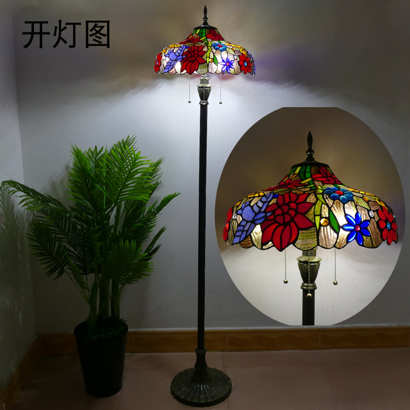 メーカーレトロティファニーフロアランプリビング北欧ins风ステンドグラスフロアランプ寝室ブックルームランプ