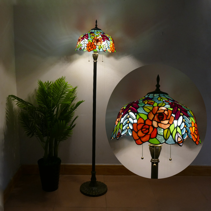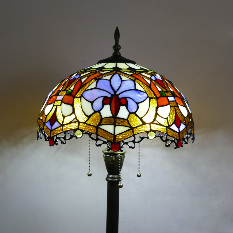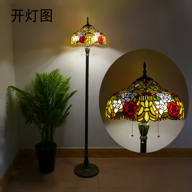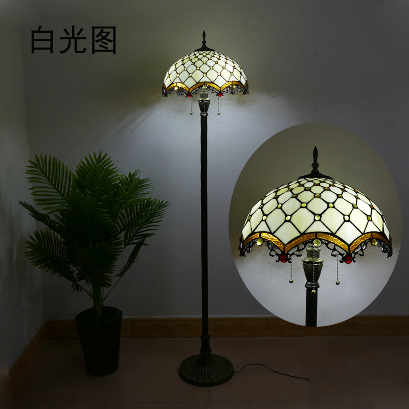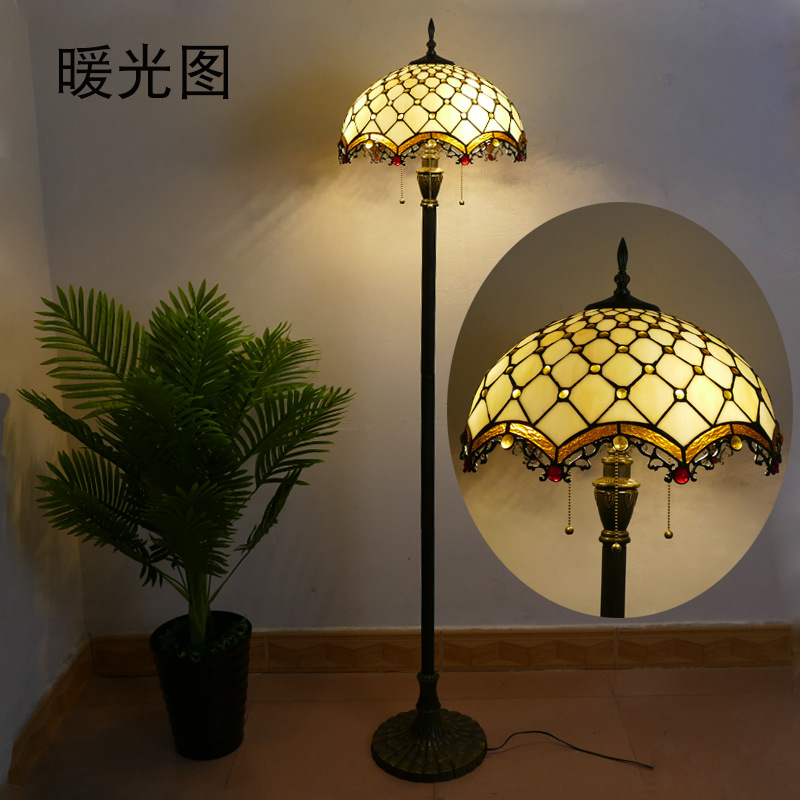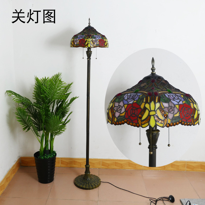 メーカーレトロティファニーフロアランプリビング北欧ins风ステンドグラスフロアランプ寝室ブックルームランプ