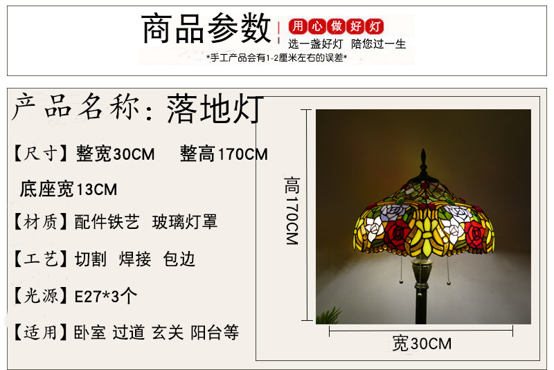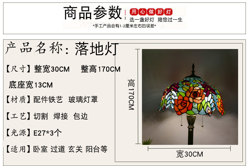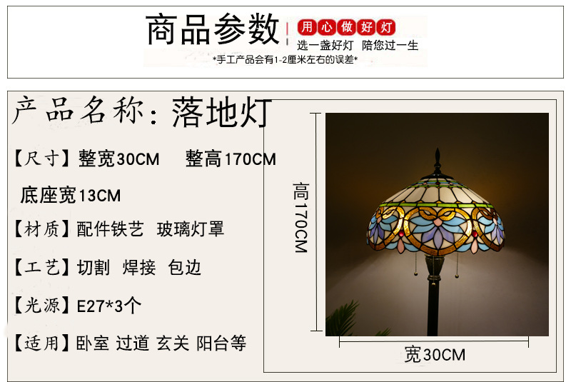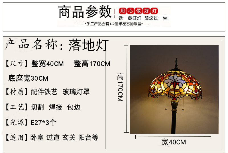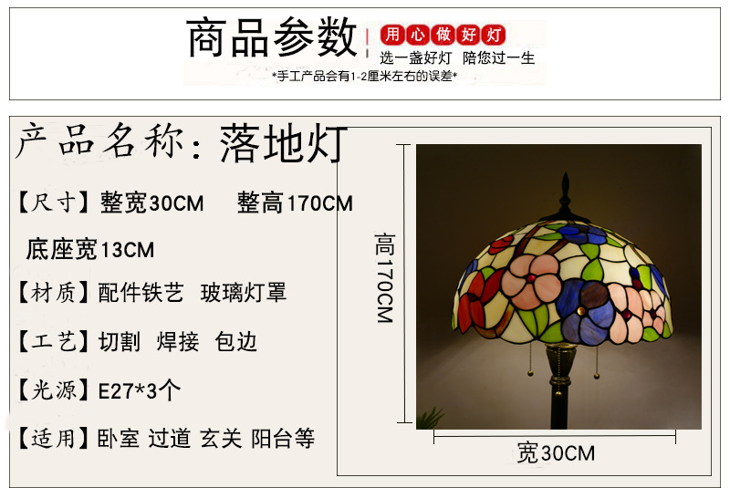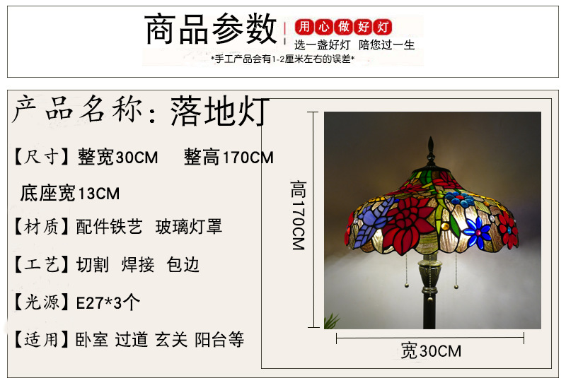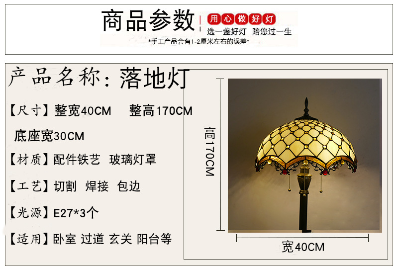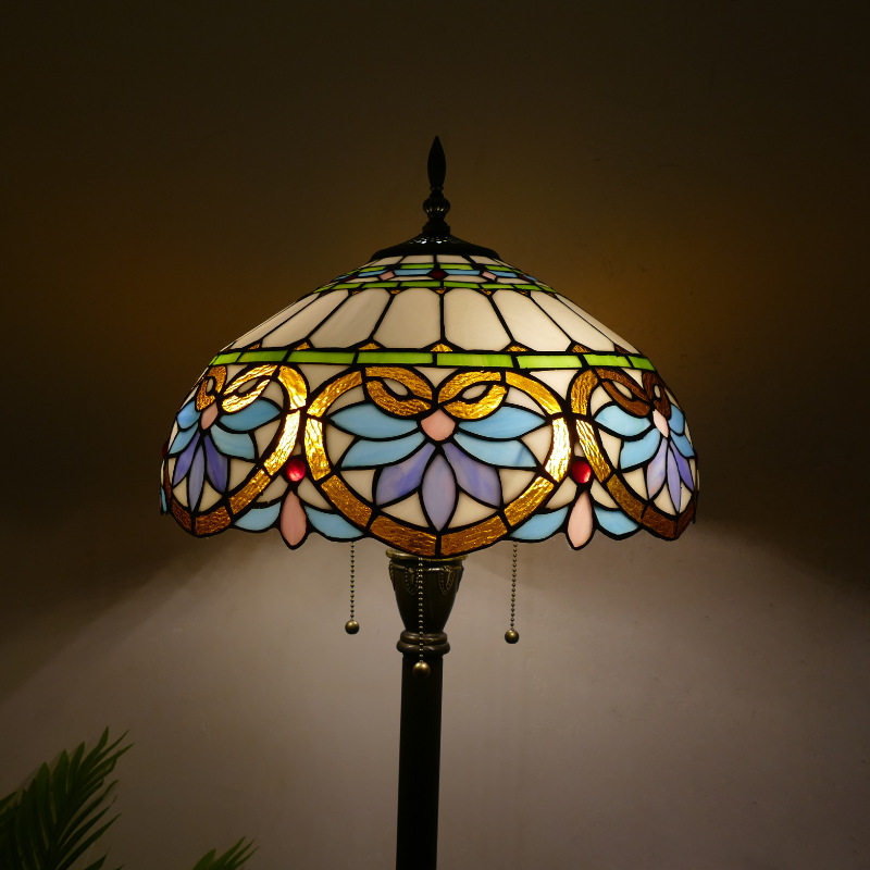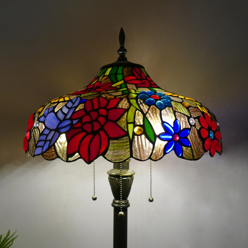メーカーレトロティファニーフロアランプリビング北欧ins风ステンドグラスフロアランプ寝室ブックルームランプ