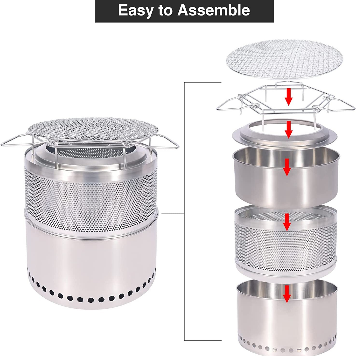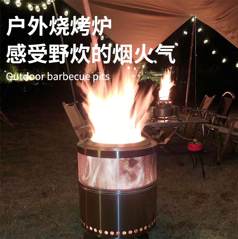 新しい屋外キャンプ薪ストーブ大型一体ステンレスストーブかがり火ストーブ庭園無煙バーベキューストーブ熱