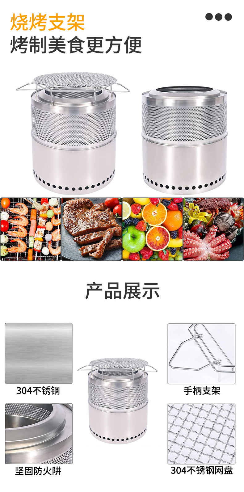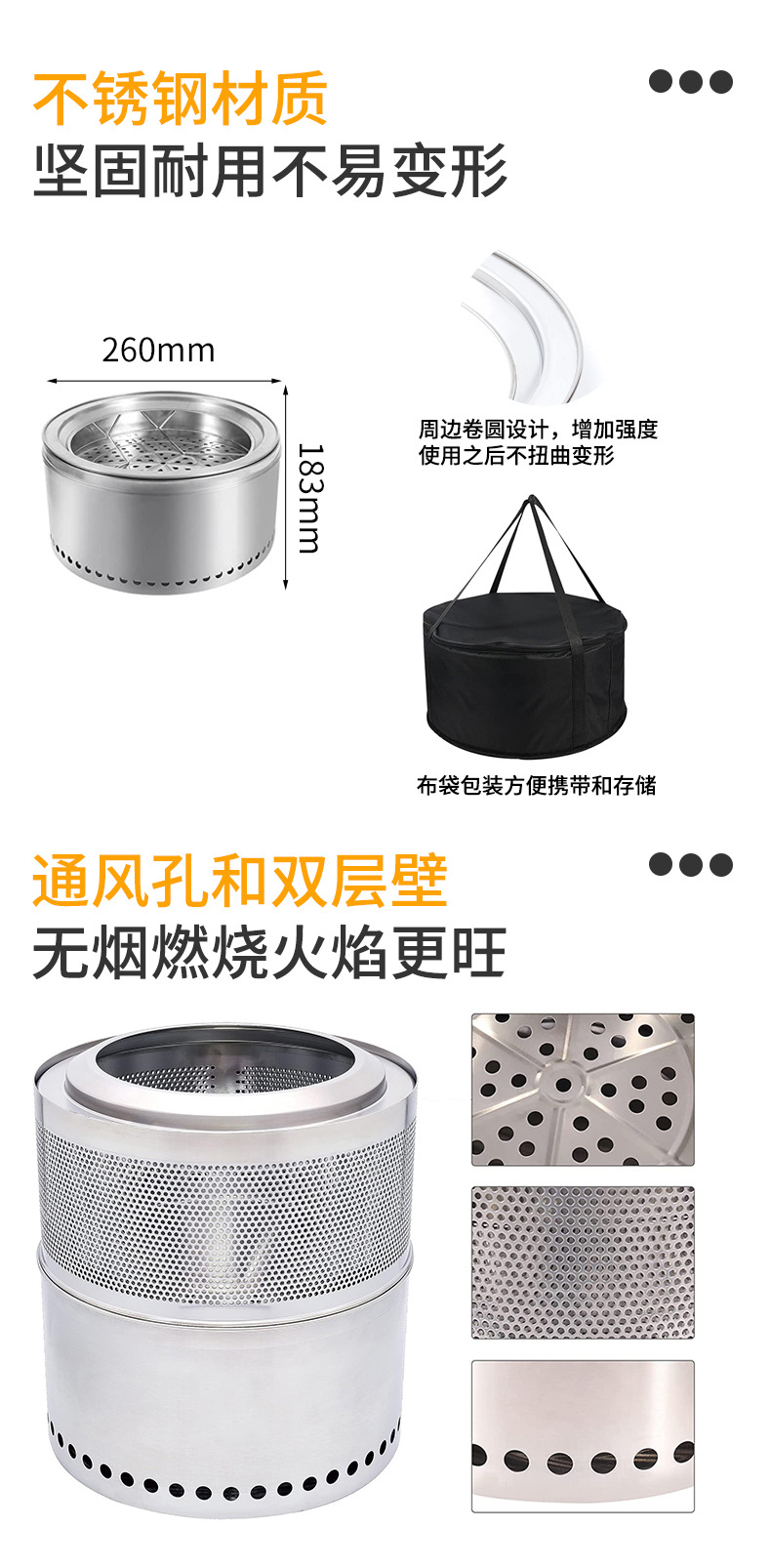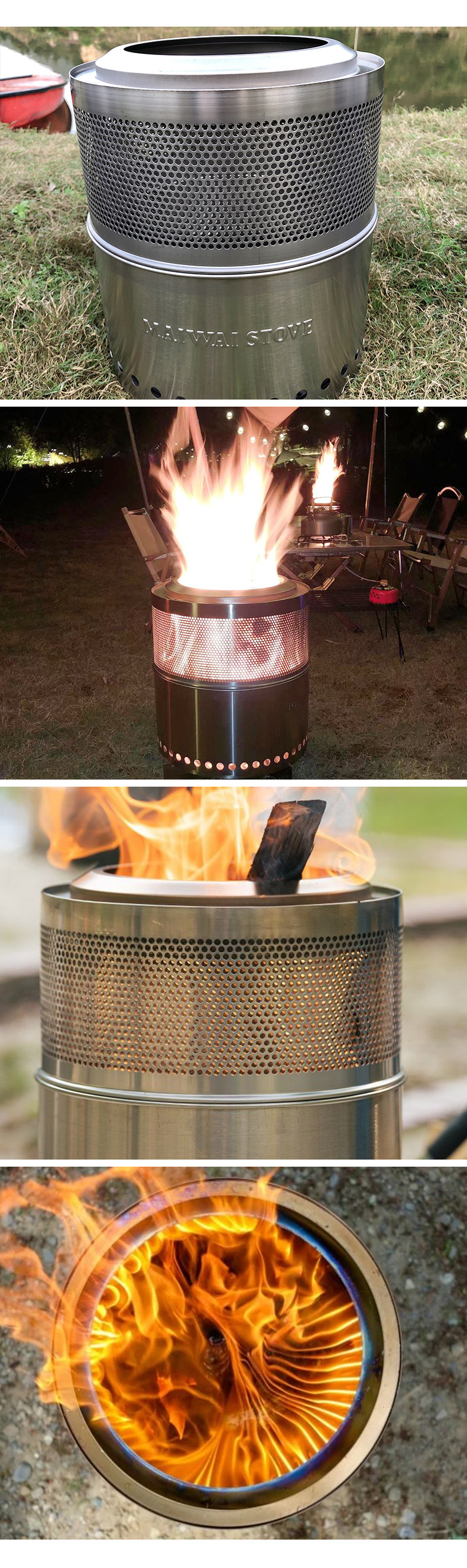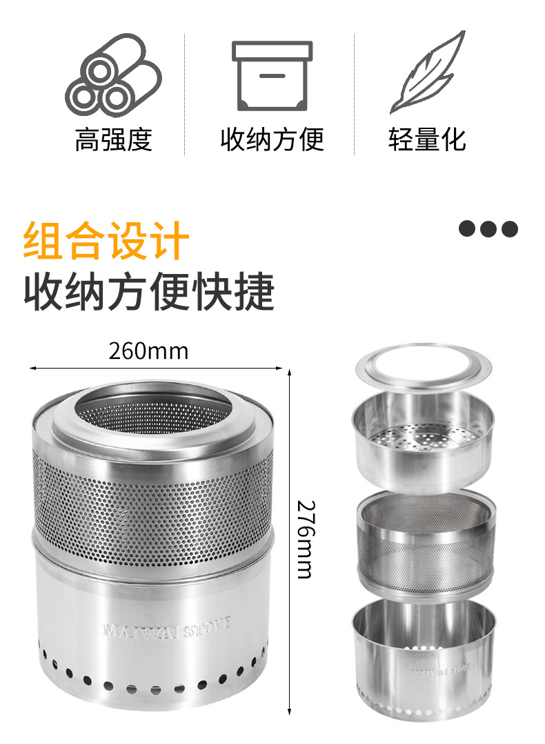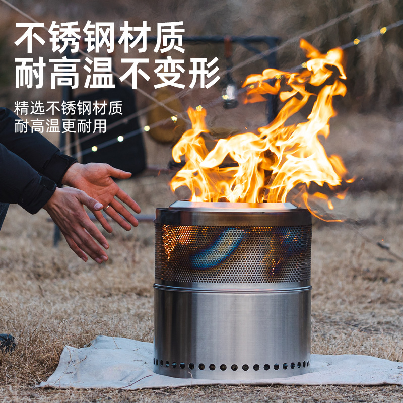 屋外キャンプ薪ストーブ分体ステンレスストーブかがり火ストーブ庭園無煙バーベキューストーブが人気