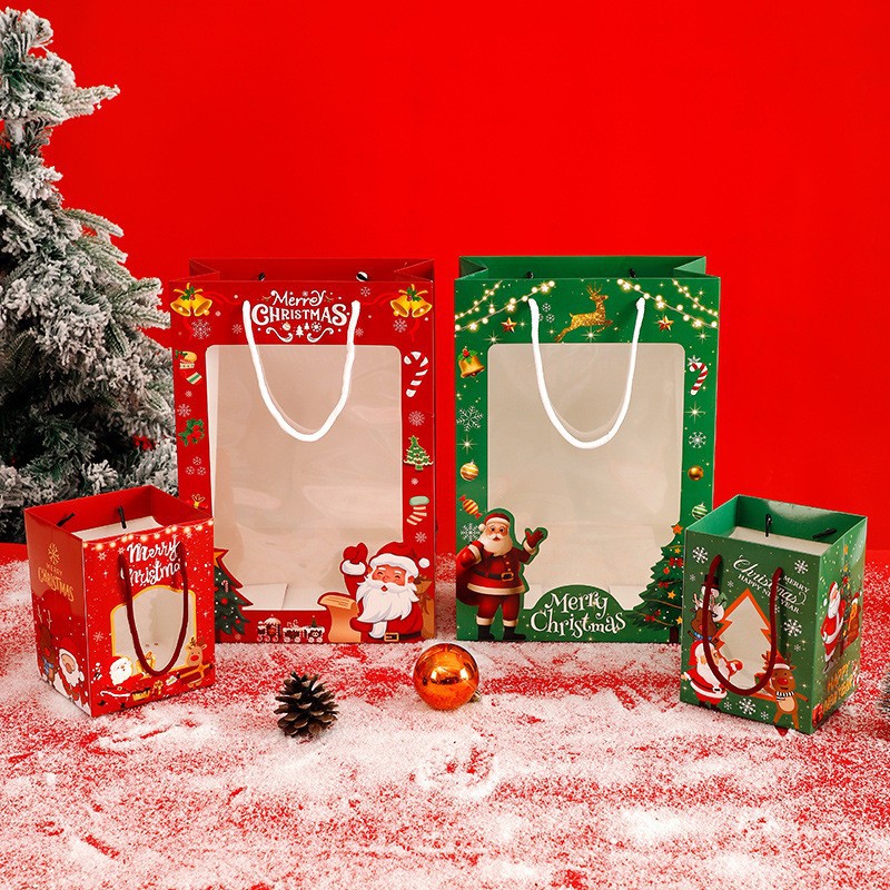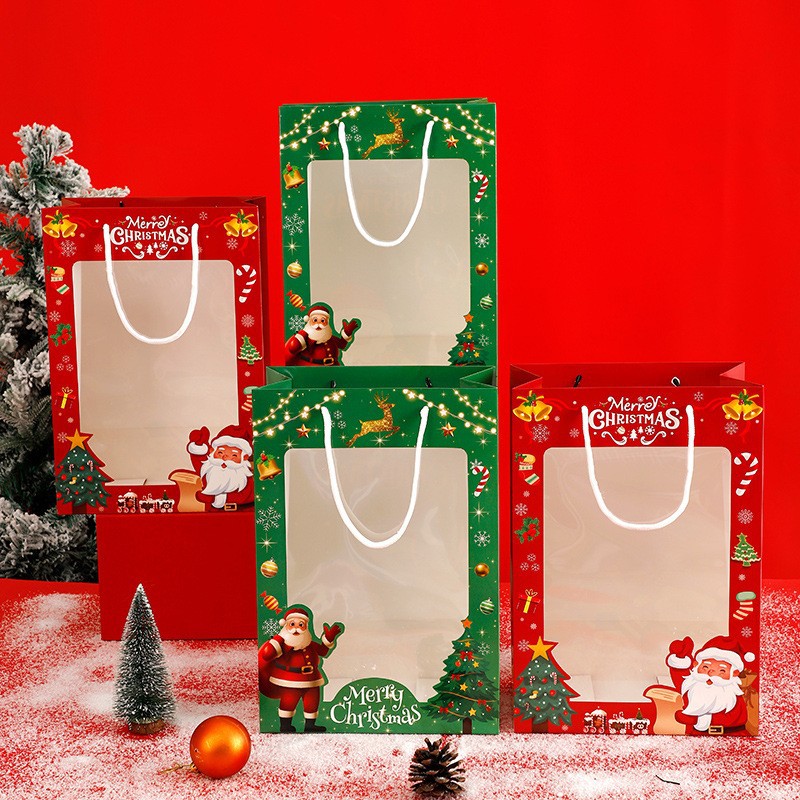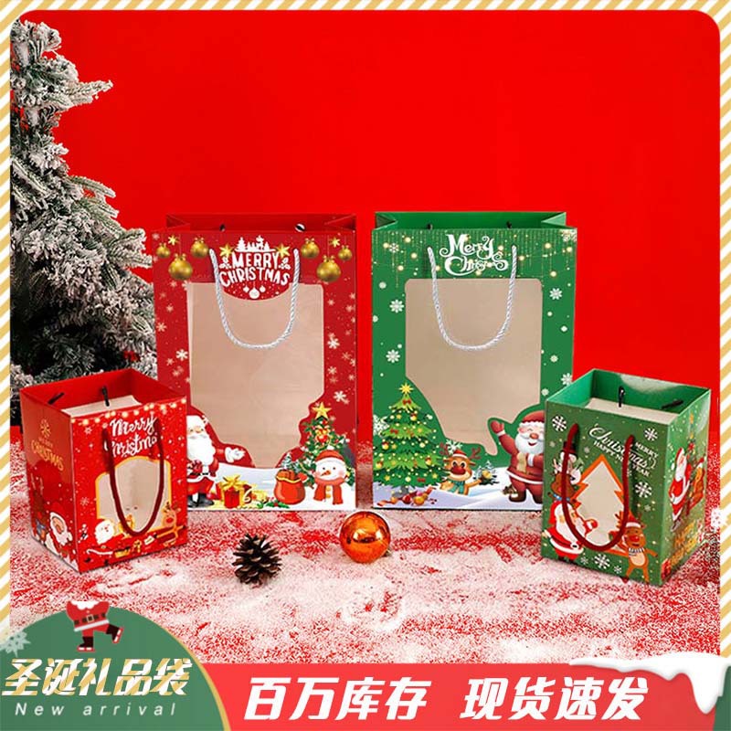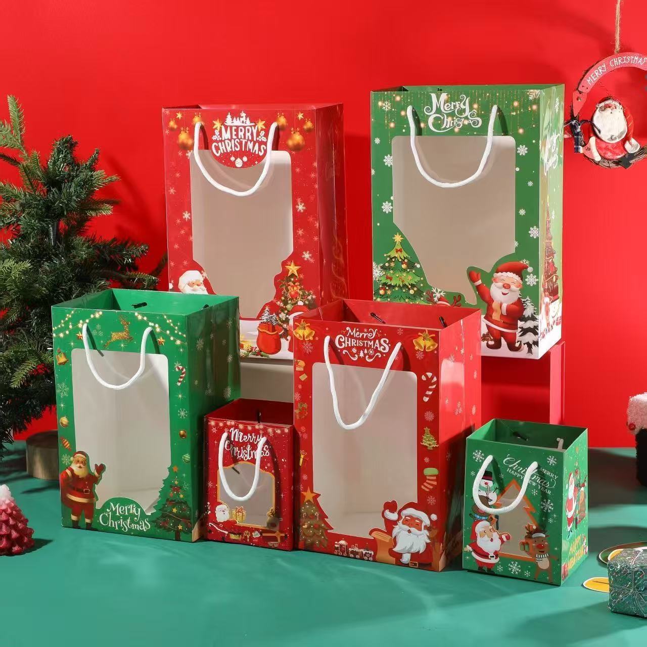 新しいクリスマスギフトバッグ、クリスマスイブのリンゴ包装袋、キャンディバッグ、透明窓付きハンドバッグ、卸売販売中