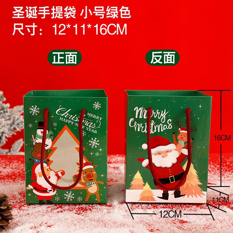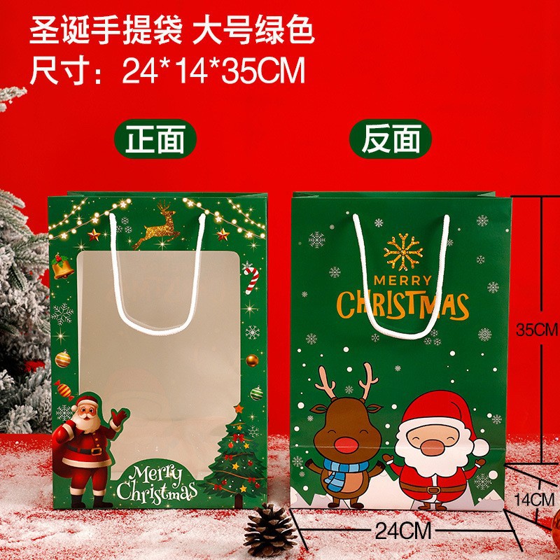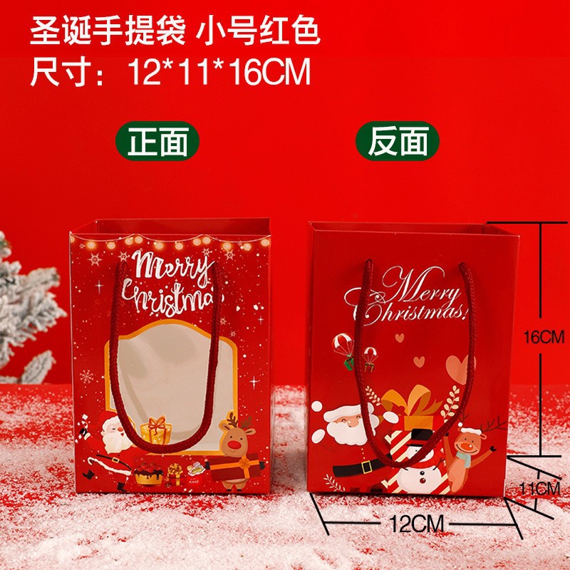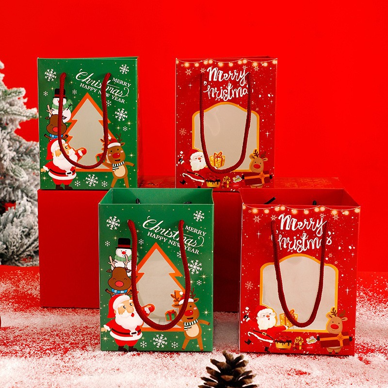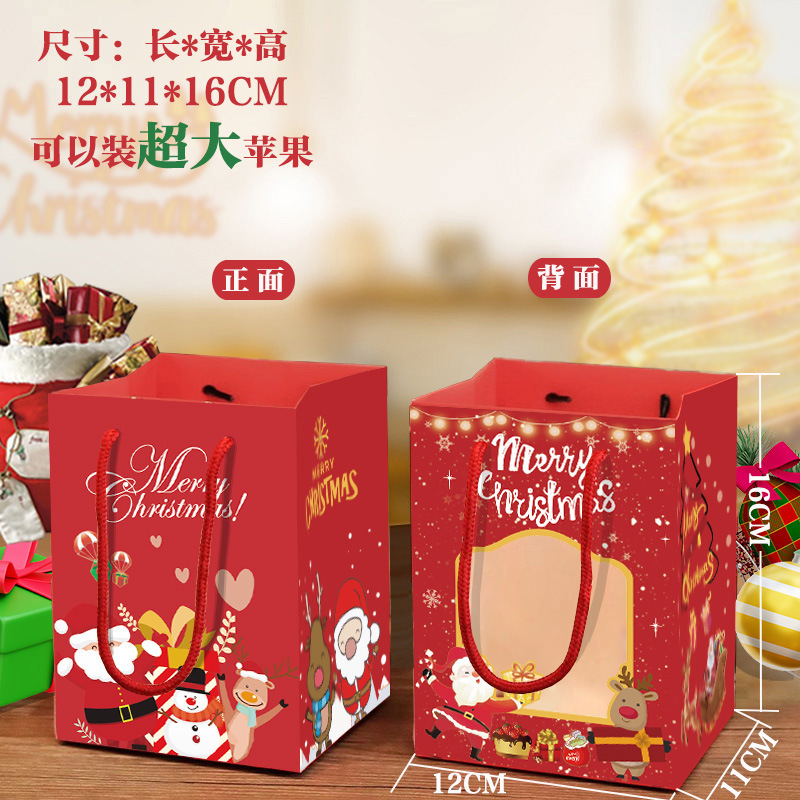 新しいクリスマスギフトバッグ、クリスマスイブのリンゴ包装袋、キャンディバッグ、透明窓付きハンドバッグ、卸売販売中