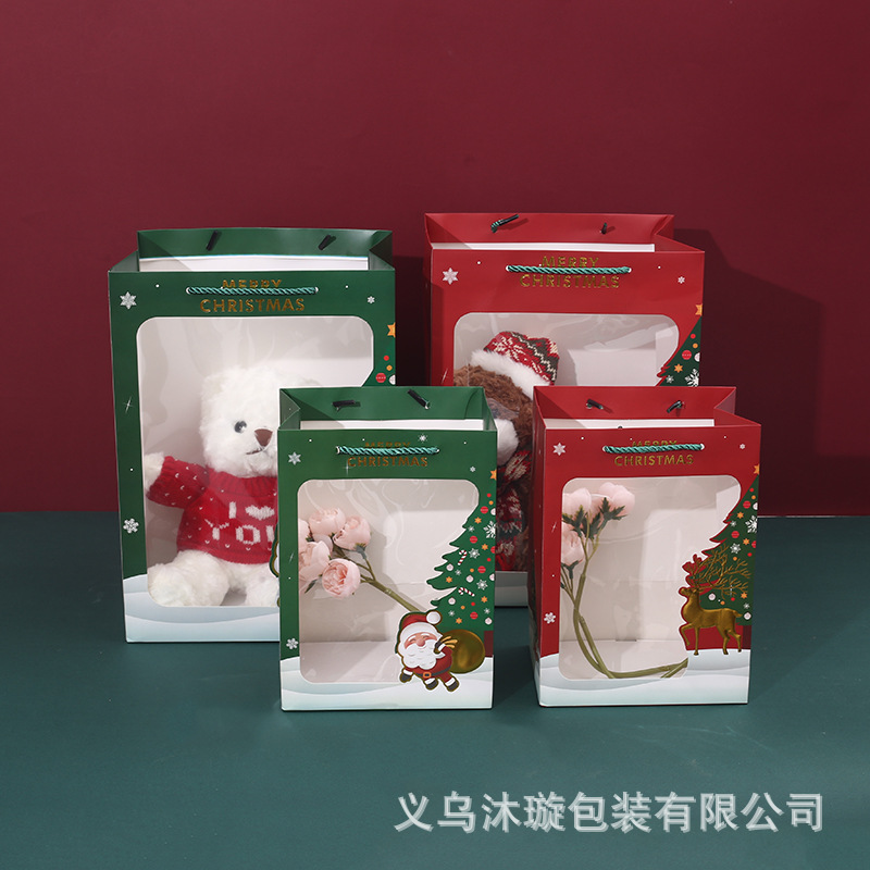 クリスマスのギフトバッグのショーウインドーの手提げ袋の新しい窓の透明な紙袋のクリスマスイブのリンゴの包装袋のプレゼント袋