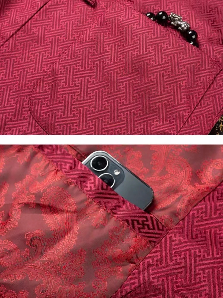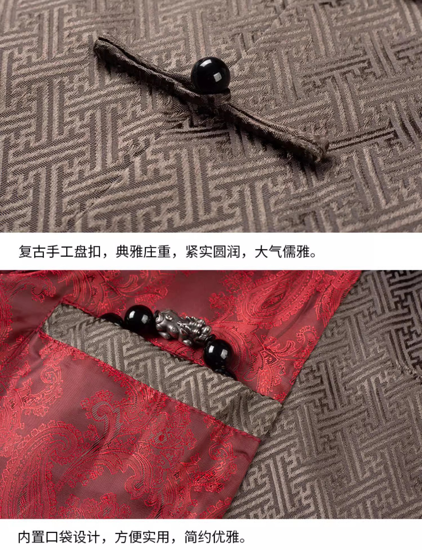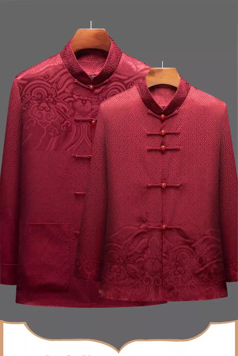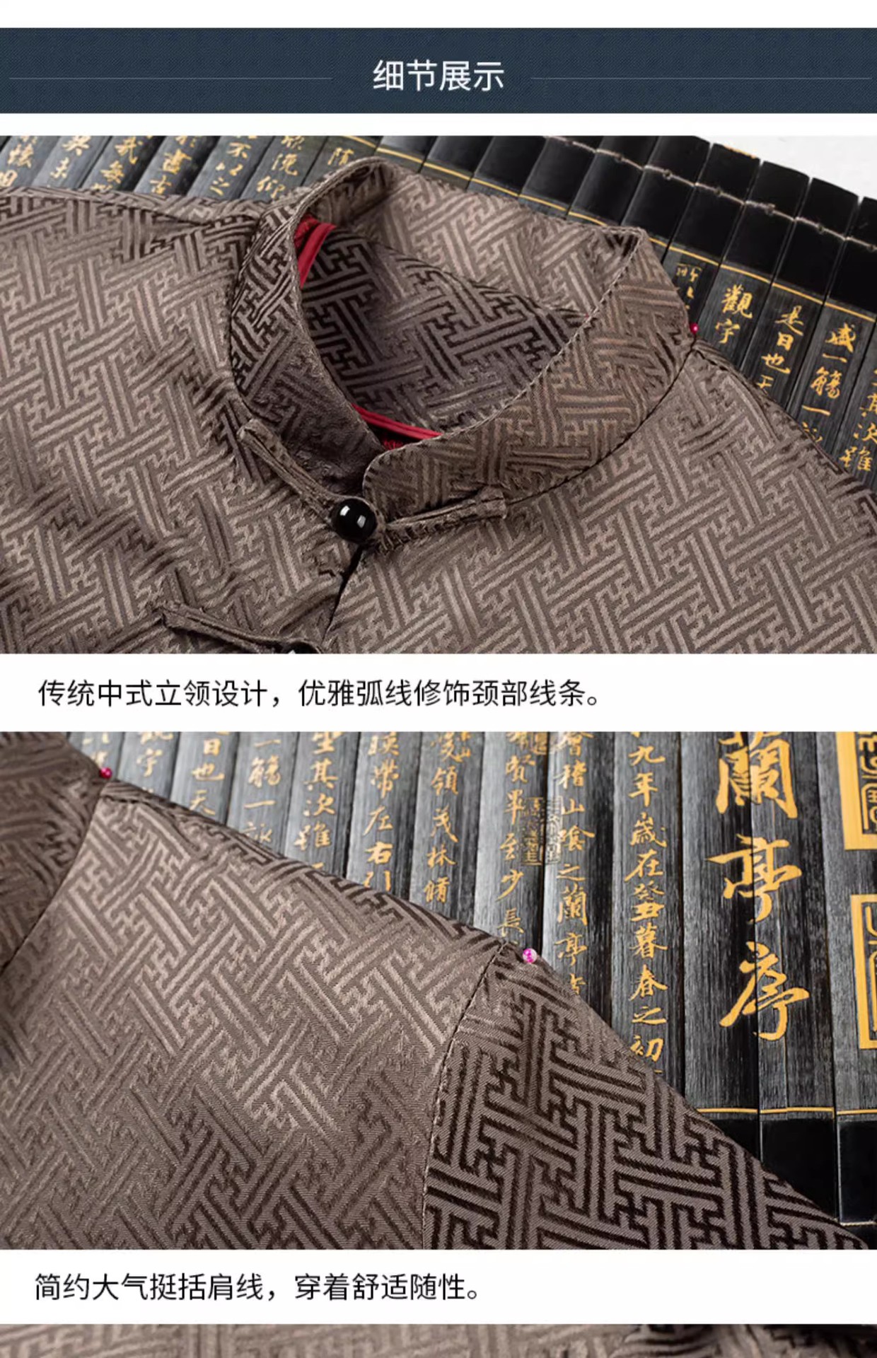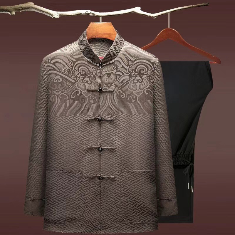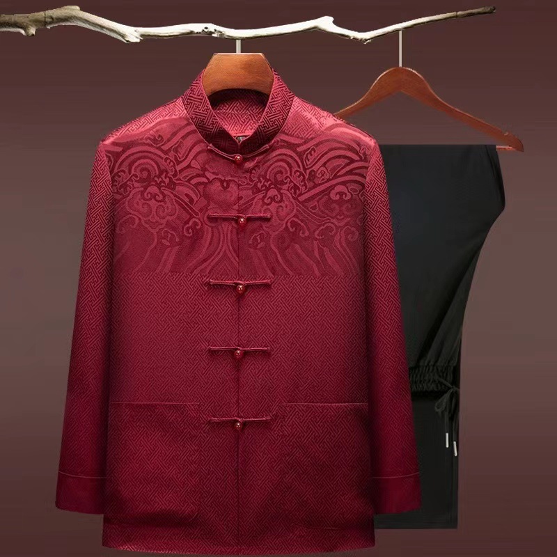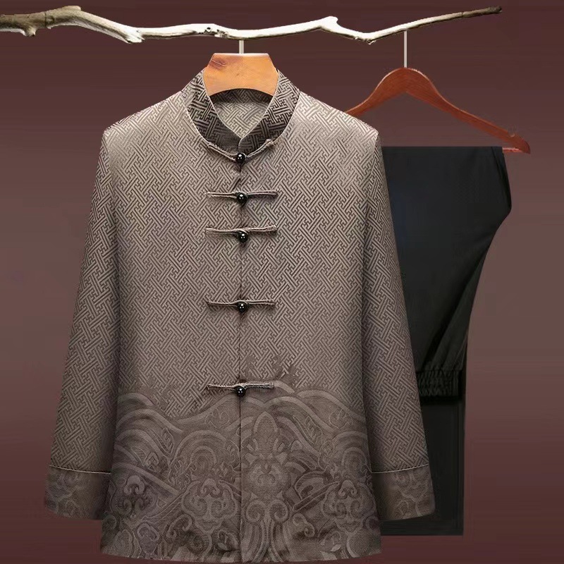 中高年唐装男春秋コート中国風上着ジャケット老人誕生日過寿父ウェディングドレスセット