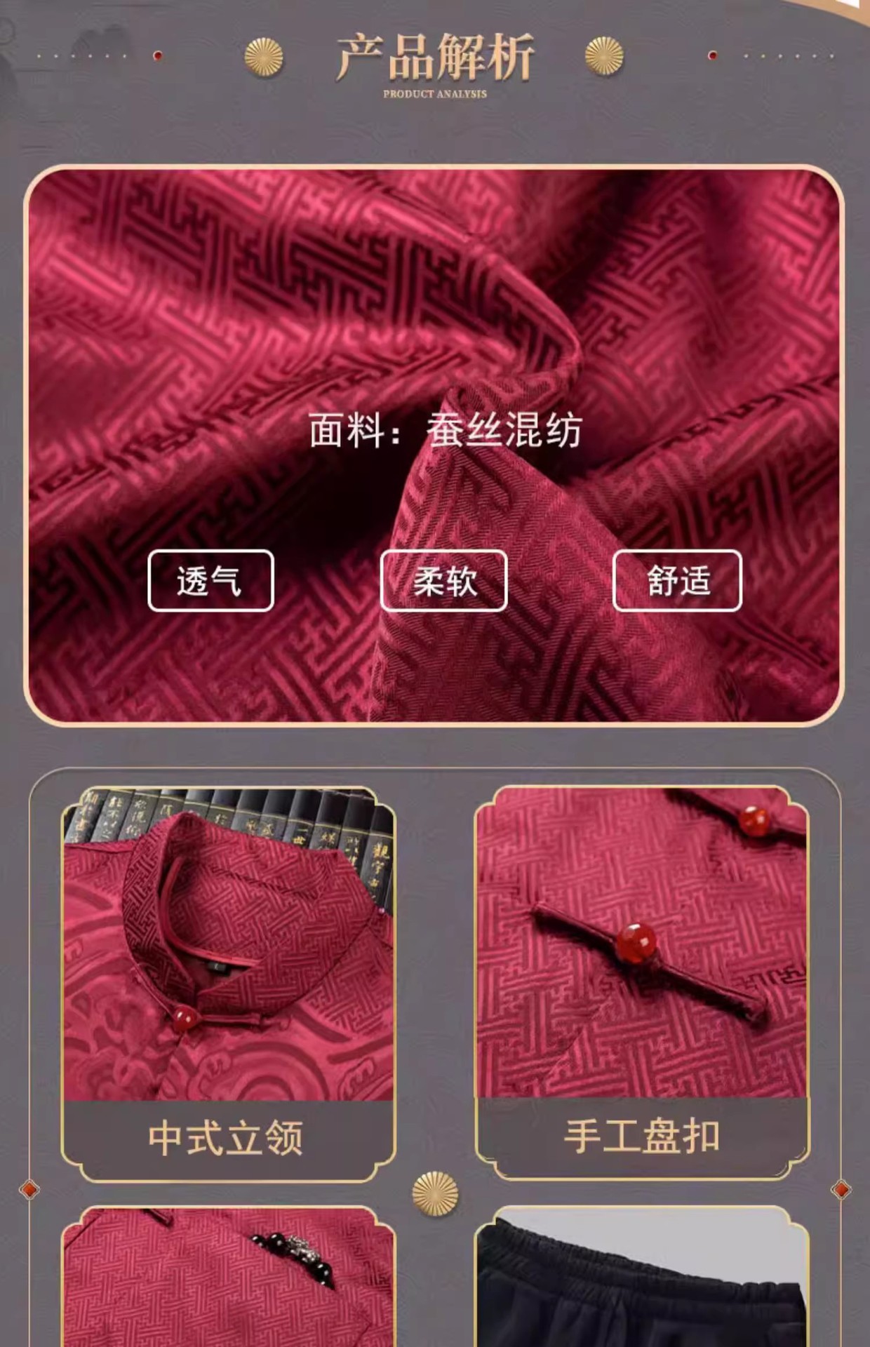 マルベリーシルク唐スーツメンズ中高年夏長袖中国風お父さんスーツ 2025 新しい中国風おじいちゃん夏スーツ