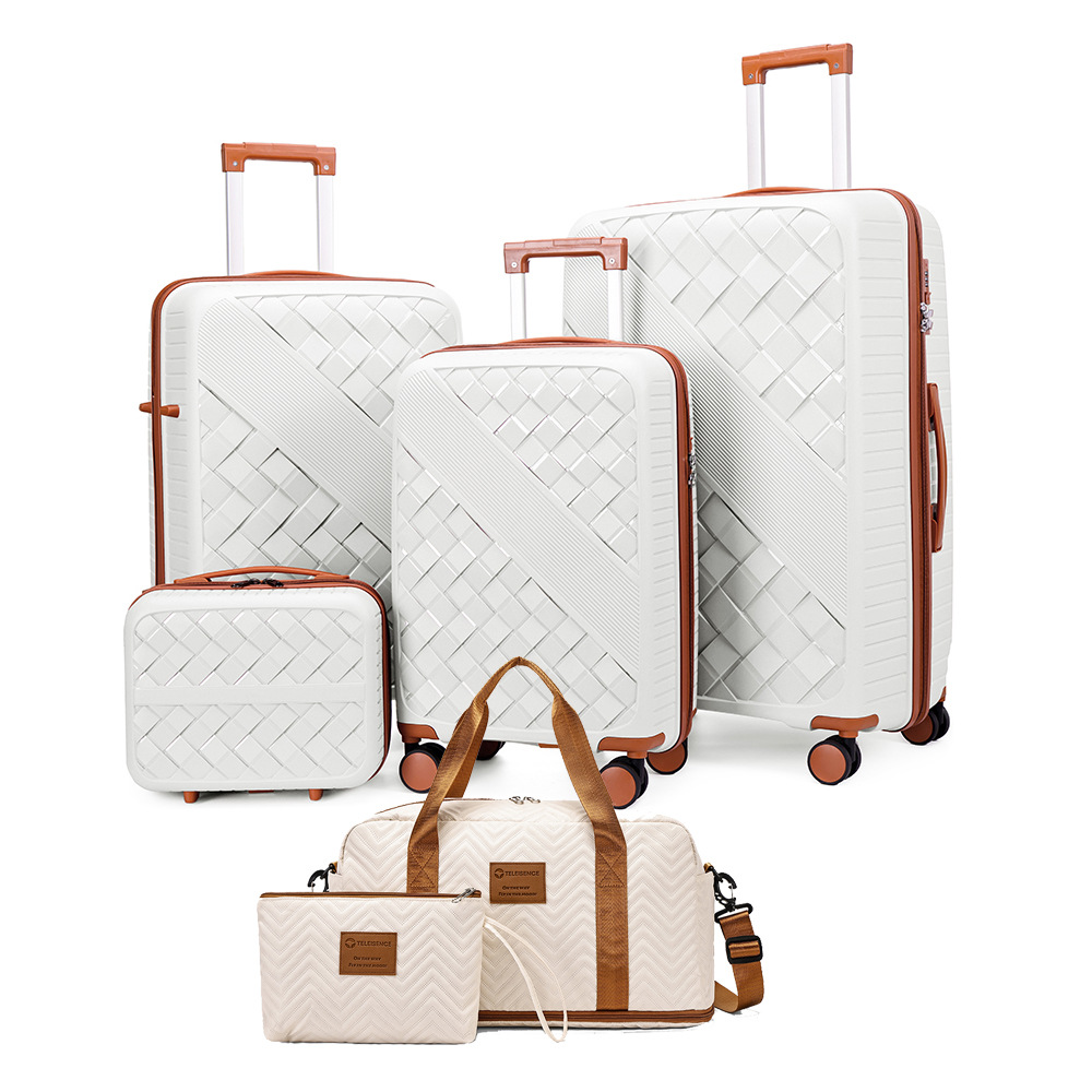 6点セットPP製トロリーケース、耐爆ジッパー、万能ホイール付き旅行用スーツケース、収納ボックスセット、機内持ち込み可能スーツケース