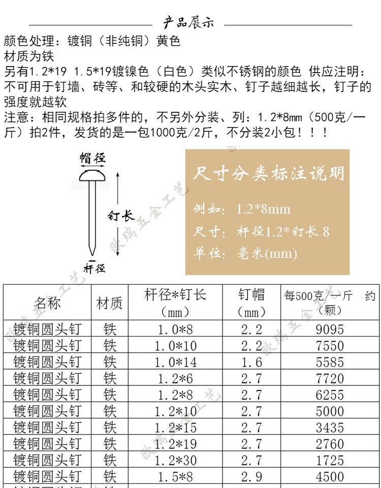 イエロー 1.0*8mm 25.5kg グラム、約 9095 個,イエロー 1.0*10mm 25.5kg グラム、約 7550 個,イエロー 1.2×6mm 25.5kg グラム 約7720個,イエロー 1.2*8mm 25.5kg グラム、約 6255 個,イエロー 1.2*10mm 25.5kg グラム、約 5000 個,イエロー 1.2*15mm 25.5kg グラム、約 3435 個,イエロー 1.2*19mm 25.5kg グラム、約 2760 個,イエロー 1.2×25mm 25.5kg グラム 約2200枚,イエロー 1.2×30mm 25.5kg グラム 約1725個,イエロー 1.5*8mm 25.5kg グラム、約 4590 個,イエロー 1.5*10mm 25.5kg グラム、約 3700 個,イエロー 1.5*13mm 25.5kg グラム、約 2880 個,イエロー 1.5×16mm 25.5kg グラム 約2320個,イエロー 1.5×19mm 25.5kg グラム 約1920個,イエロー 1.5×25mm 25.5kg グラム 約1370個,イエロー 1.5×30mm 25.5kg グラム 約1150枚,イエロー 1.5×35mm 25.5kg グラム 約985個,イエロー 1.8*8mm 25.5kg グラム、約 2960 個,イエロー 1.8*10mm 25.5kg グラム、約 2480 個,イエロー 1.8*15mm 25.5kg グラム、約 1660 個,イエロー 1.8*23mm 25.5kg グラム、約 1075 個,ニッケル白 1.5×19mm 25.5kg グラム 約1920個,ニッケル白 1.5×25mm 25.5kg グラム 約1370個,ニッケル白 1.5×30mm 25.5kg グラム 約1150個
