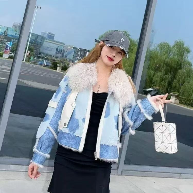 冬用ラムウールベージュファー襟ダウンジャケットシングル襟ファー素材コートネックウォーマー襟付きファー襟卸売