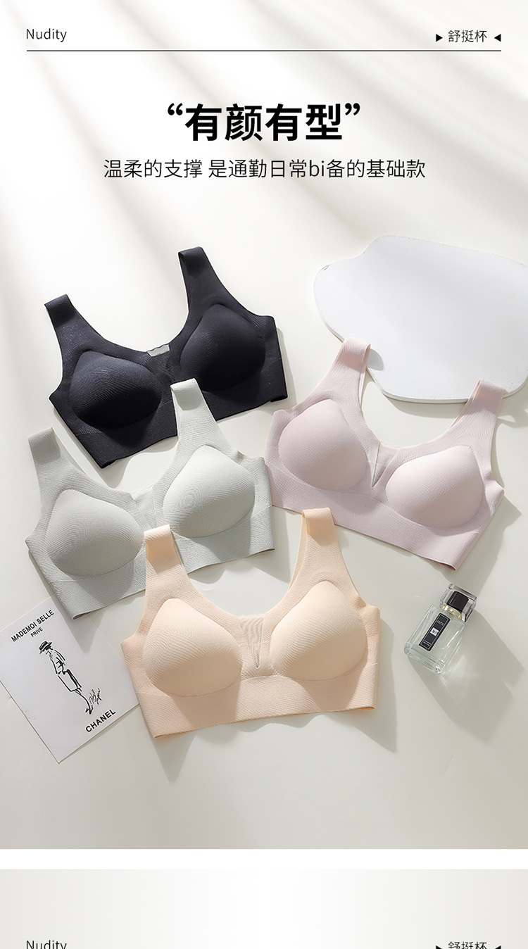 新商品の無痕下着女性秋冬新作シンプルな大気固定カップ無鋼輪下着快適通気性ブラジャー