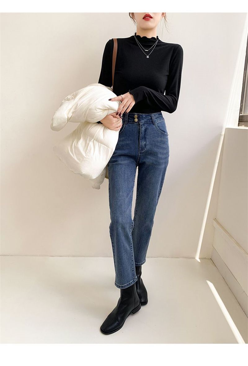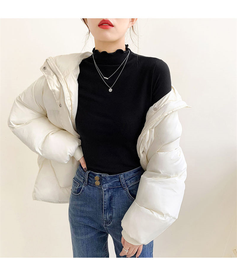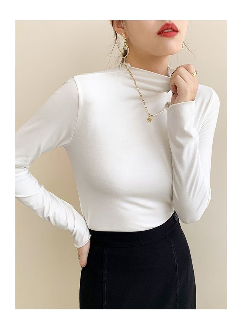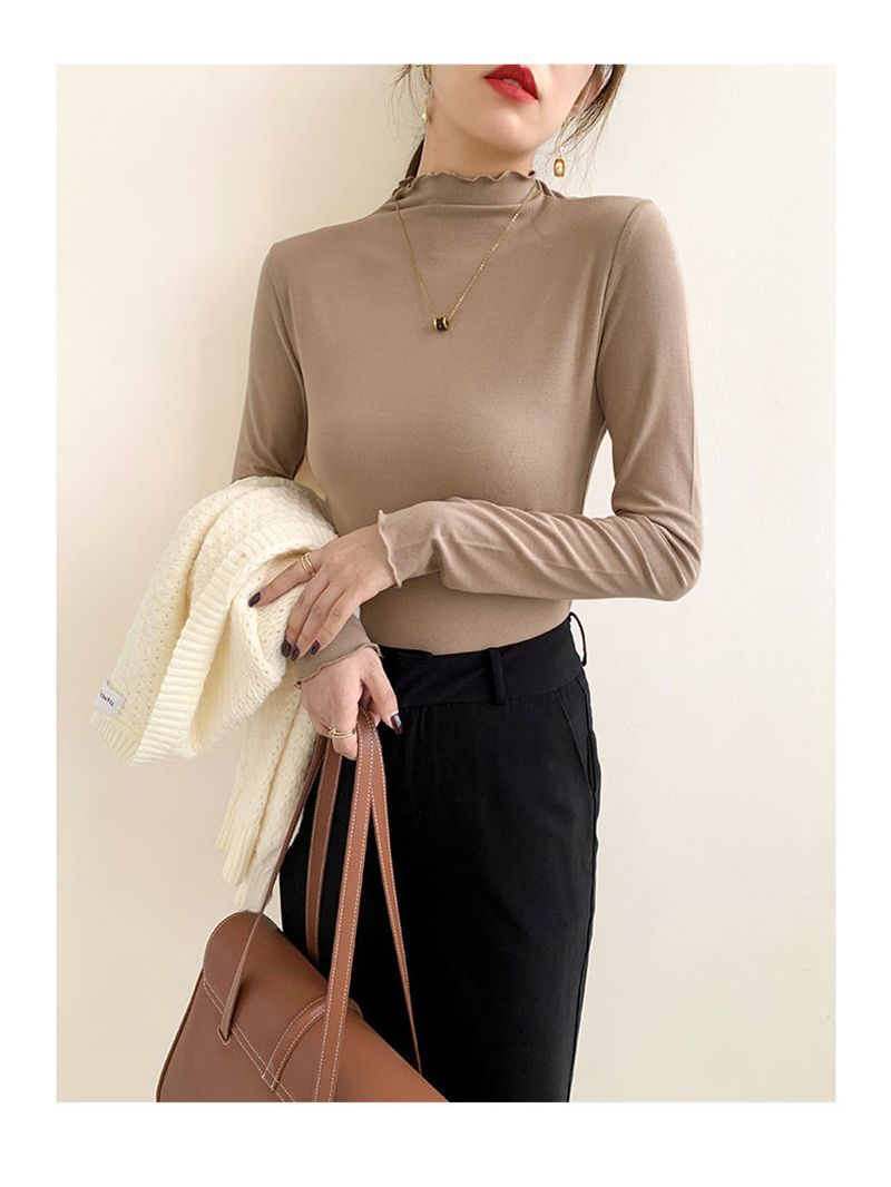 秋冬の女性用ボトリングシャツ新しい韓国スタイルニッチハイカラー外国風インナートップ学生痩身長袖Tシャツ