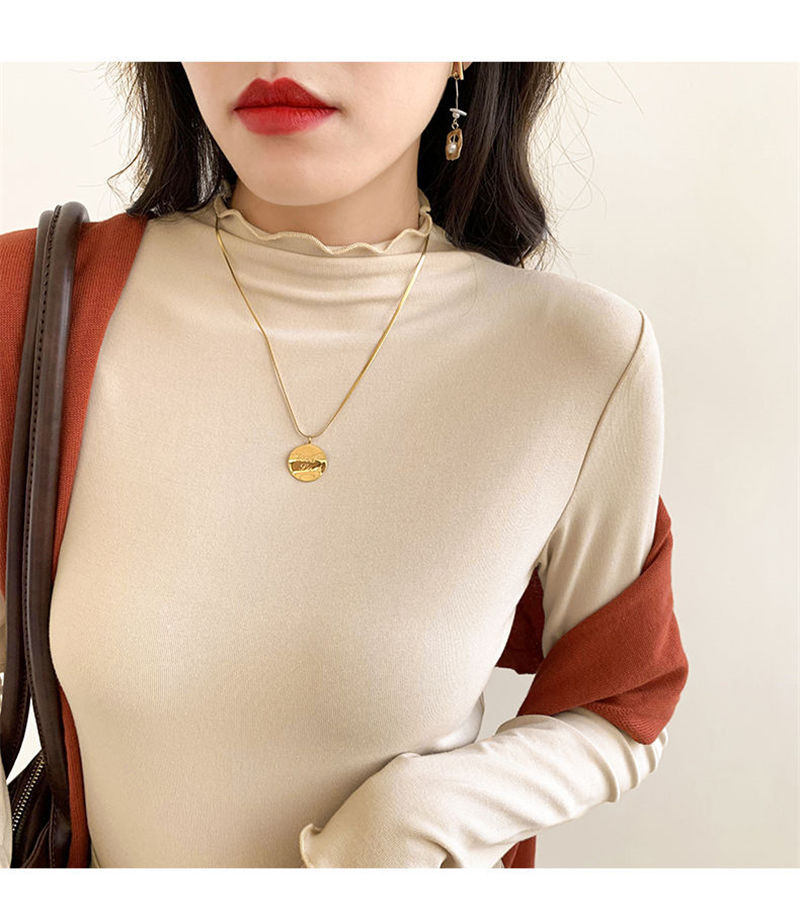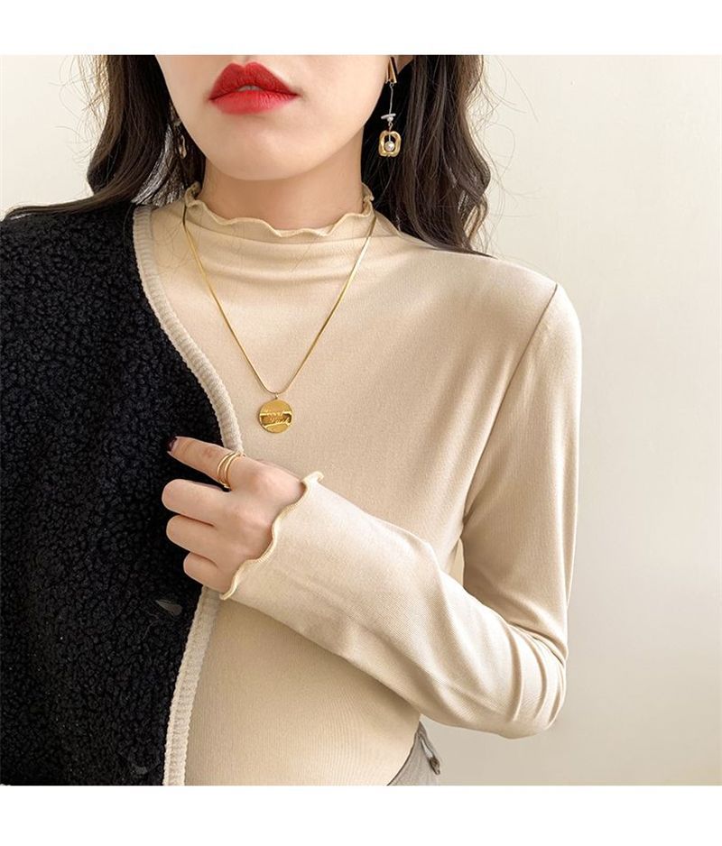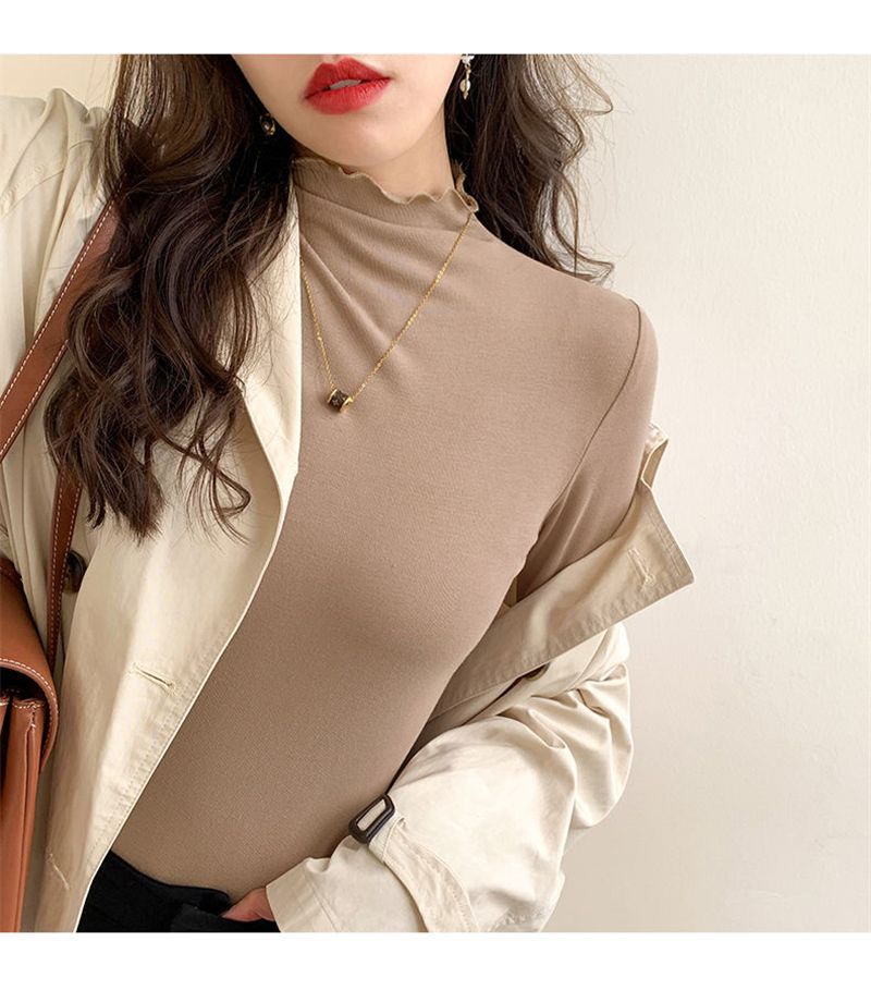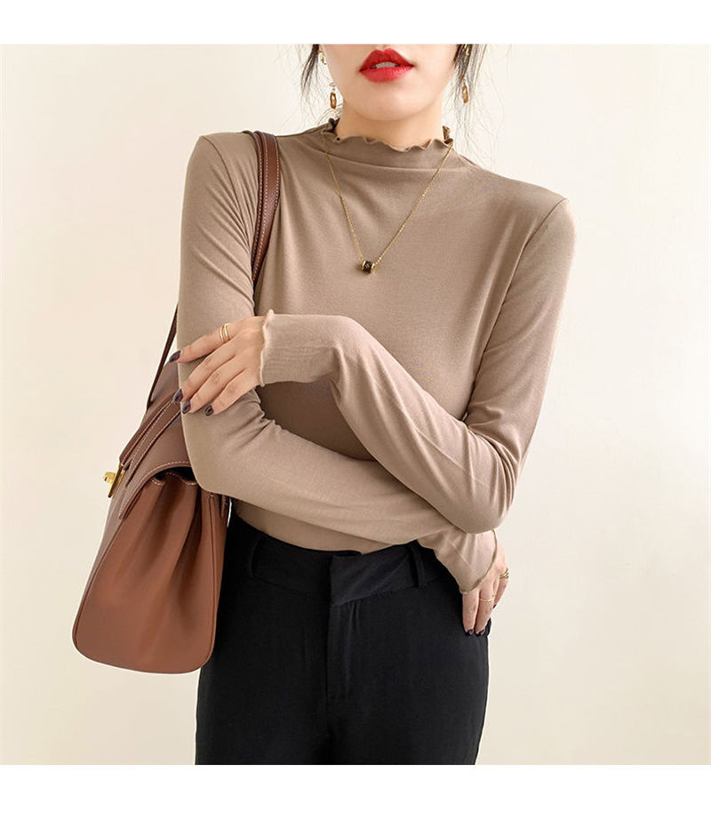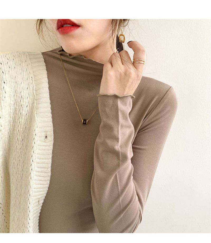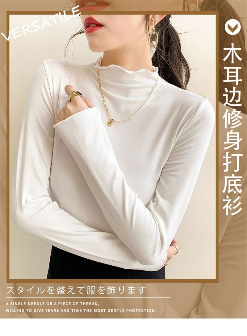ハーフタートルネックのドイツ製ベルベット素材のレディースインナーウェア、秋冬2025年新作、長袖、フリル付き、おしゃれ、学生向け、厚手トップス