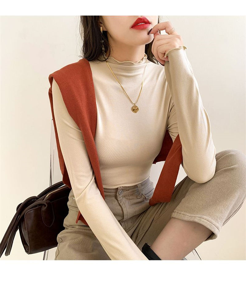 卷边半高领打底衫女内搭秋冬2023新款长袖木耳边春秋洋气上衣服潮