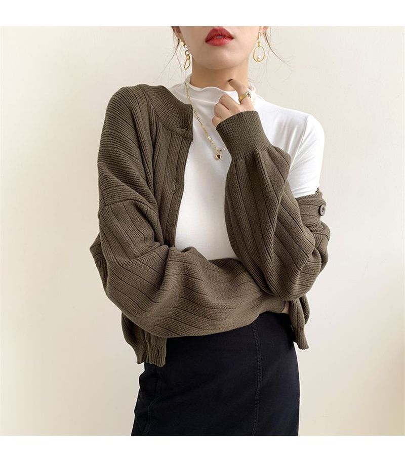 2025 秋ボタンスレッド無地長袖 Tシャツレディースフィット韓国新作トップスボトリングシャツアウタートレンディ