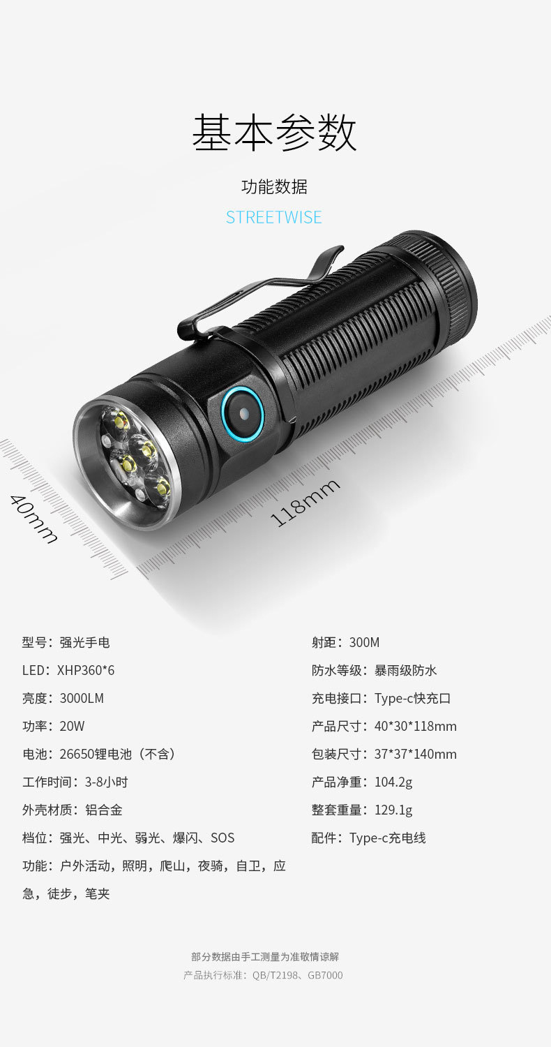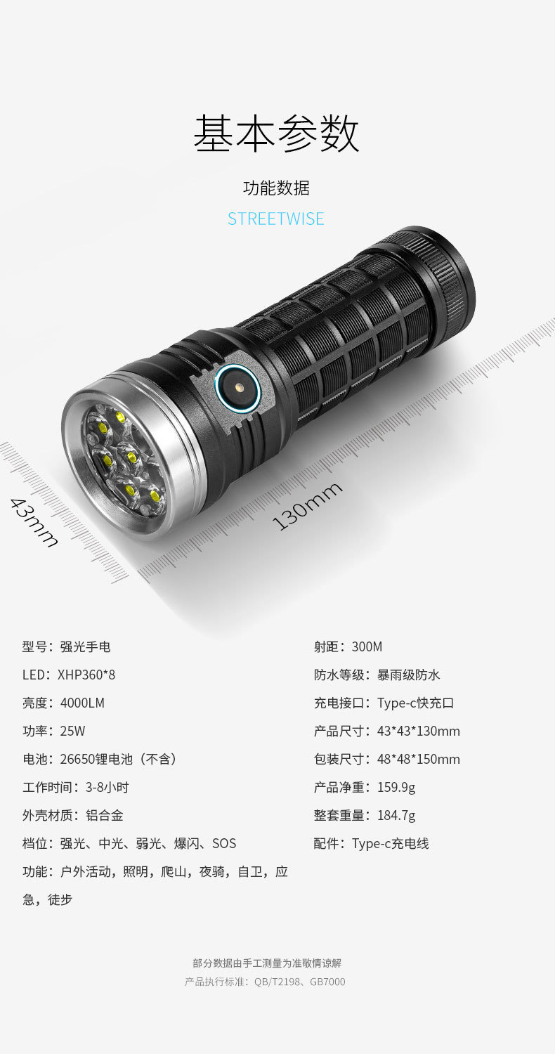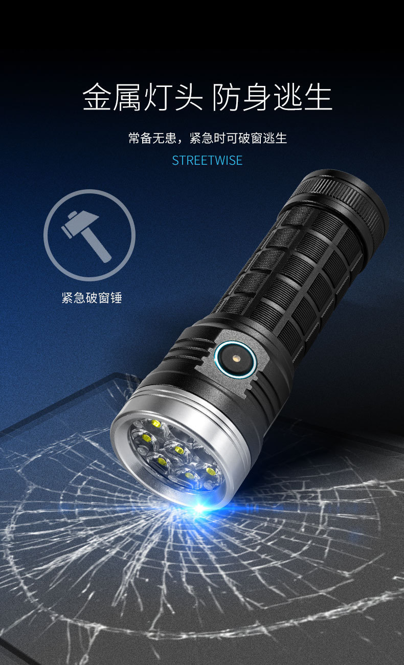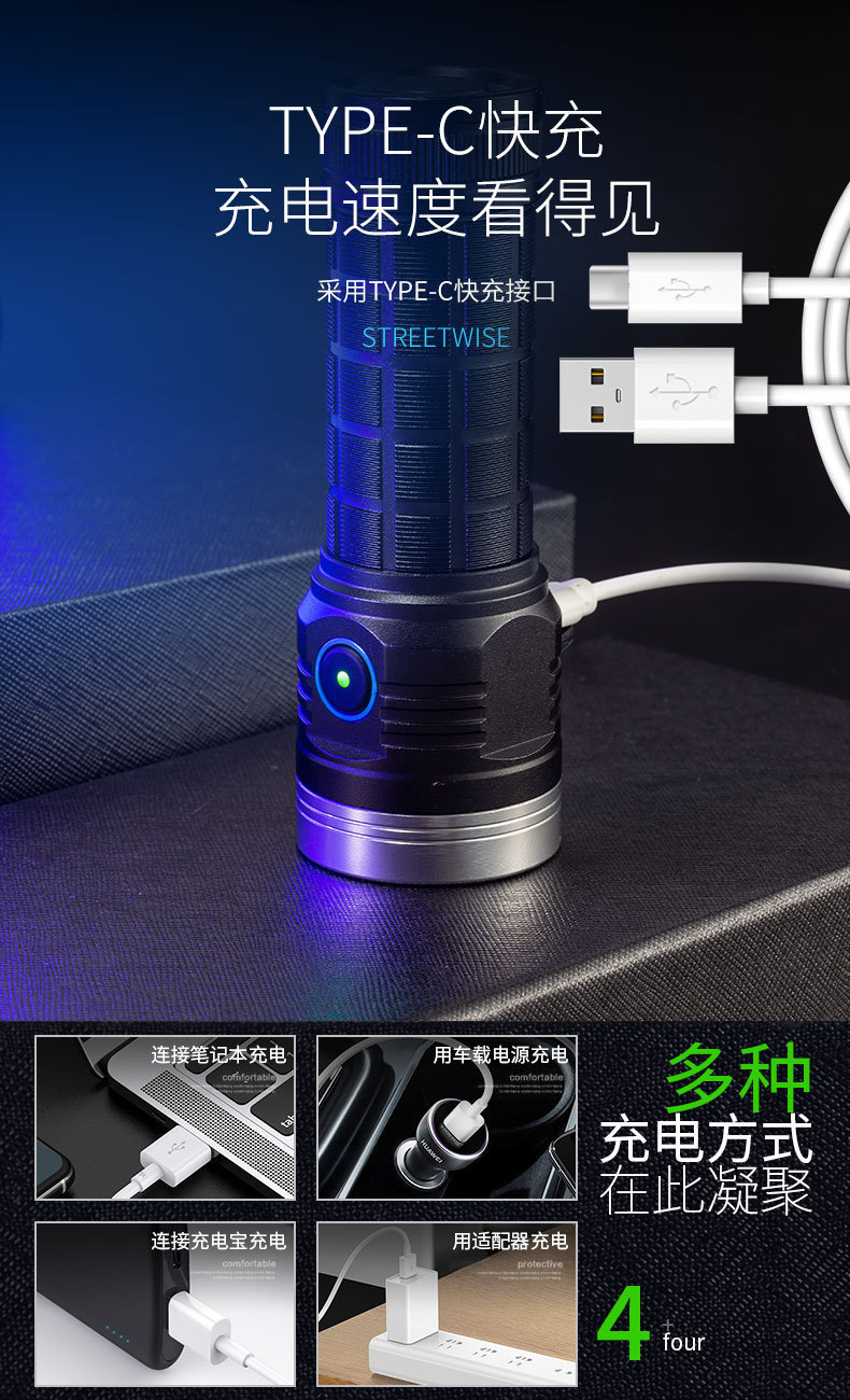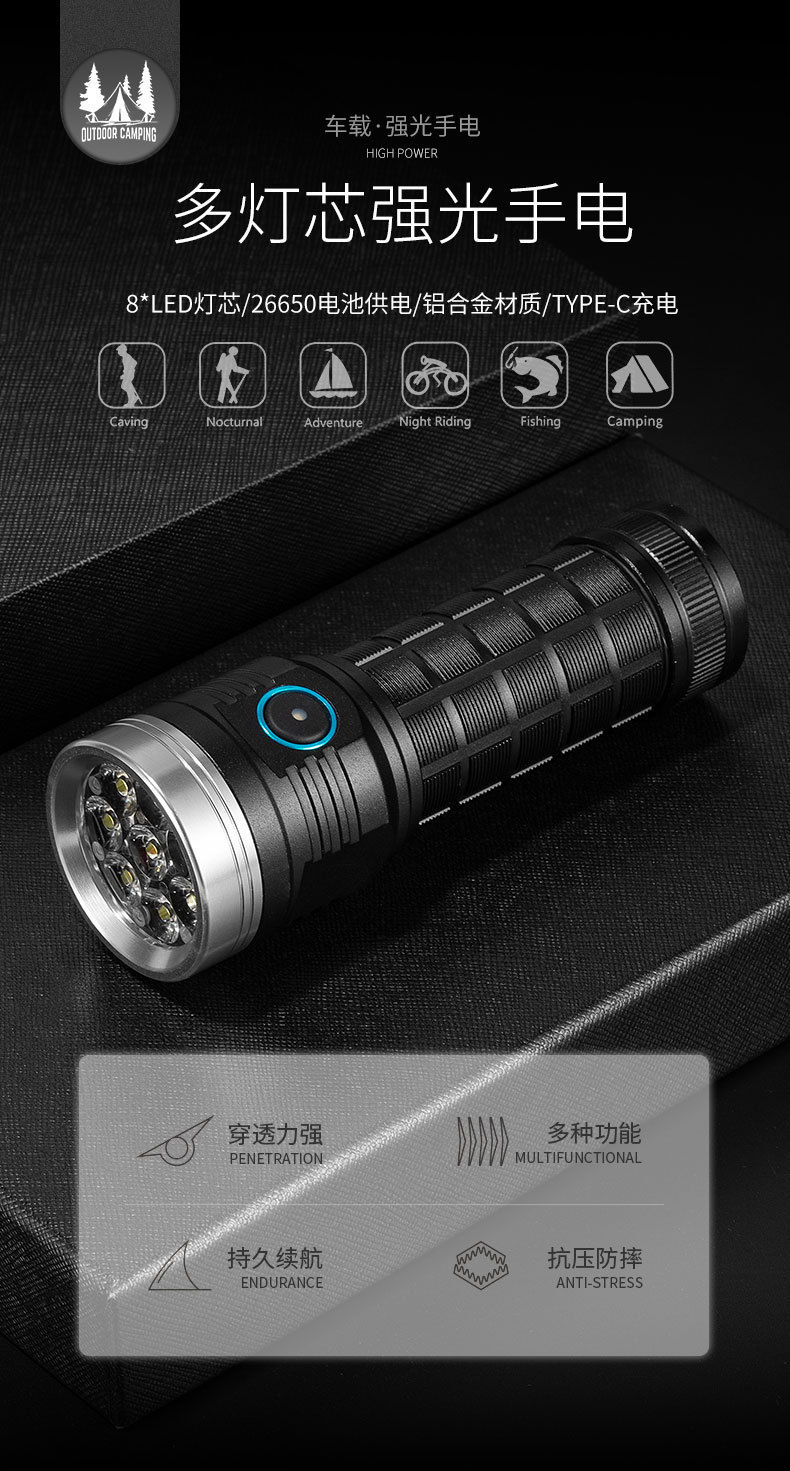 8led強光懐中電灯type-c充電長航続緊急照明防水ハイパワーアルミニウム合金懐中電灯