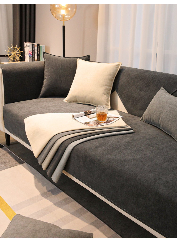 クロスボーダー純色ぬいぐるみソファークッション滑り止めフランネル厚手ソファタオルシンプルモダンソファカバー