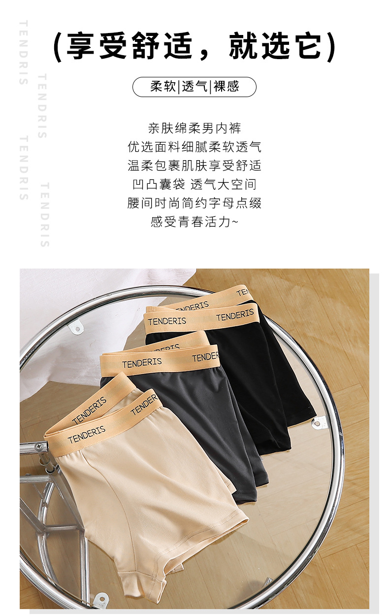 純綿メンズ下着 秋冬用 グラフェンクロッチ ユース向け 四角パンツ 通気性 ミッドウエスト ボクサーパンツ トレンドブランド