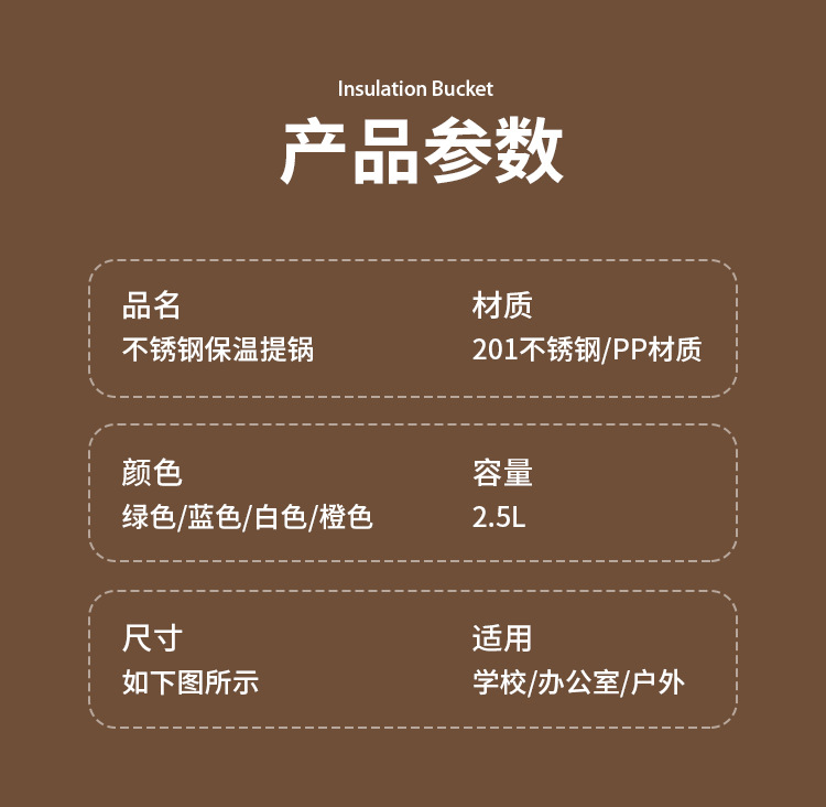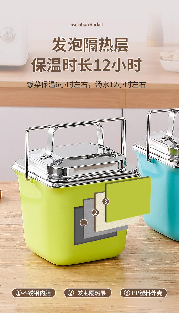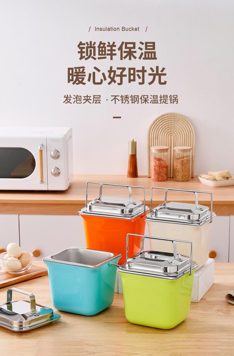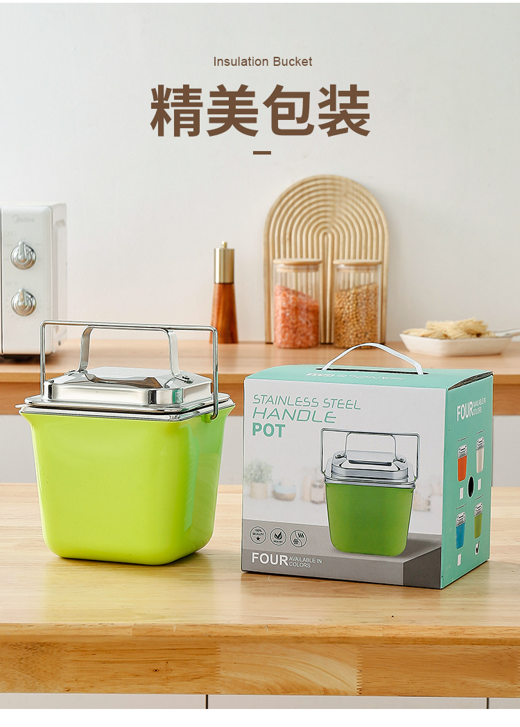 外国貿易ステンレス鋼二層ポータブル断熱ポット大容量断熱ランチボックス断熱バケツ家庭用鮮度保持ポット 3 点セット